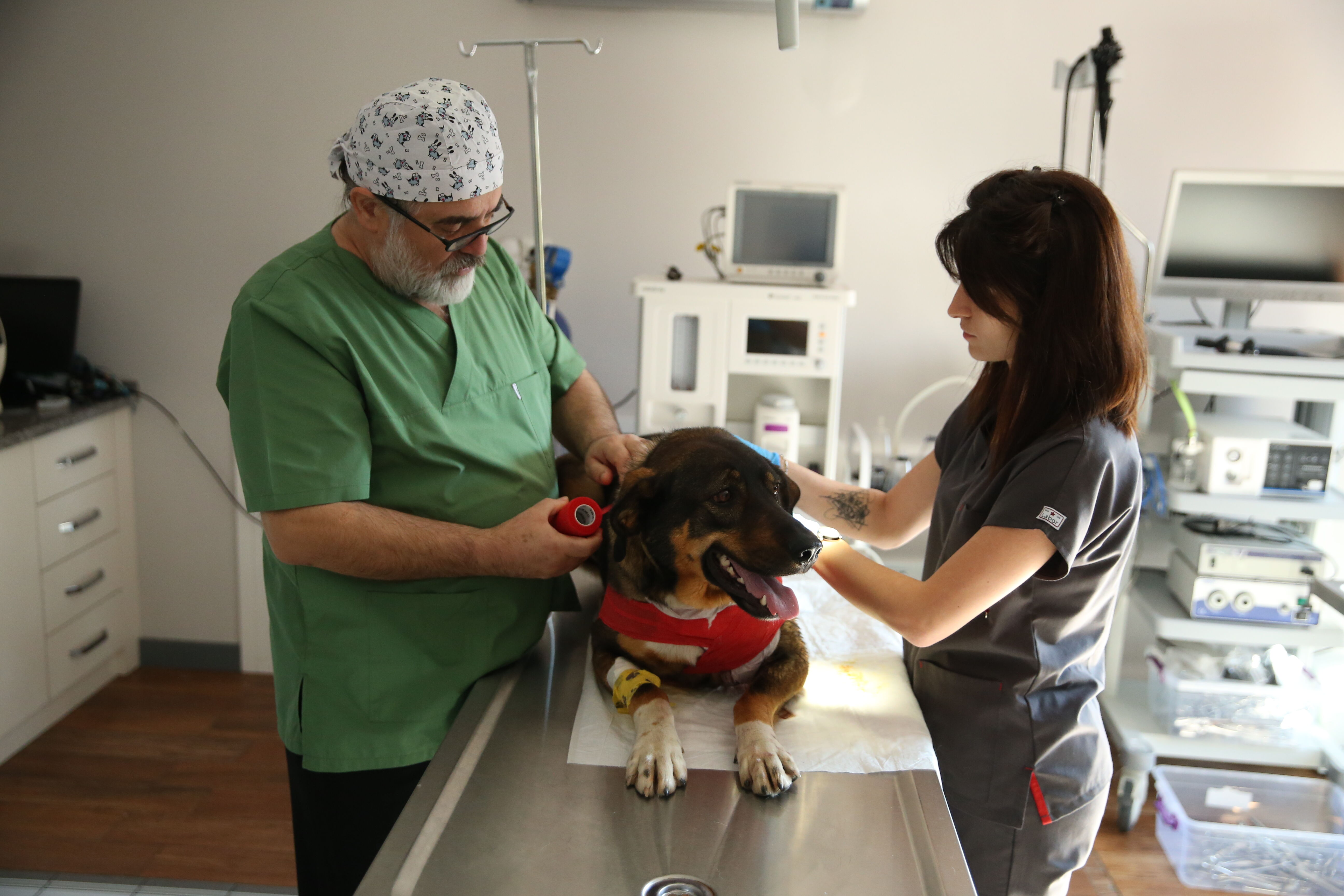 Karnından yaralanan köpeğin durumunun fark edilmesi üzerine ilçeye gelerek ilk müdahalede bulunan Veteriner Hekim Taner Canbulut, köpeği Altınordu ilçesindeki kliniğine götürerek ameliyat etti.