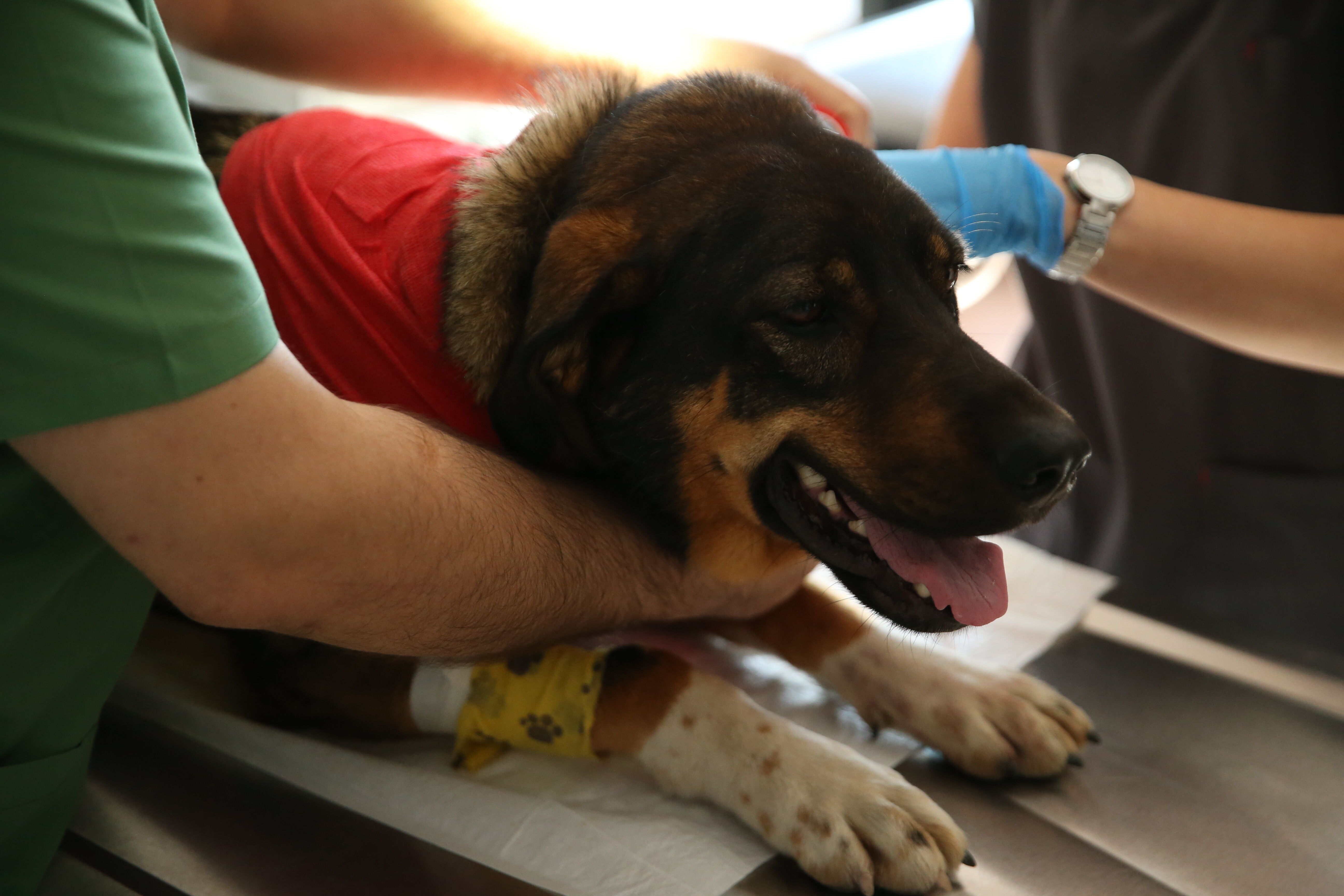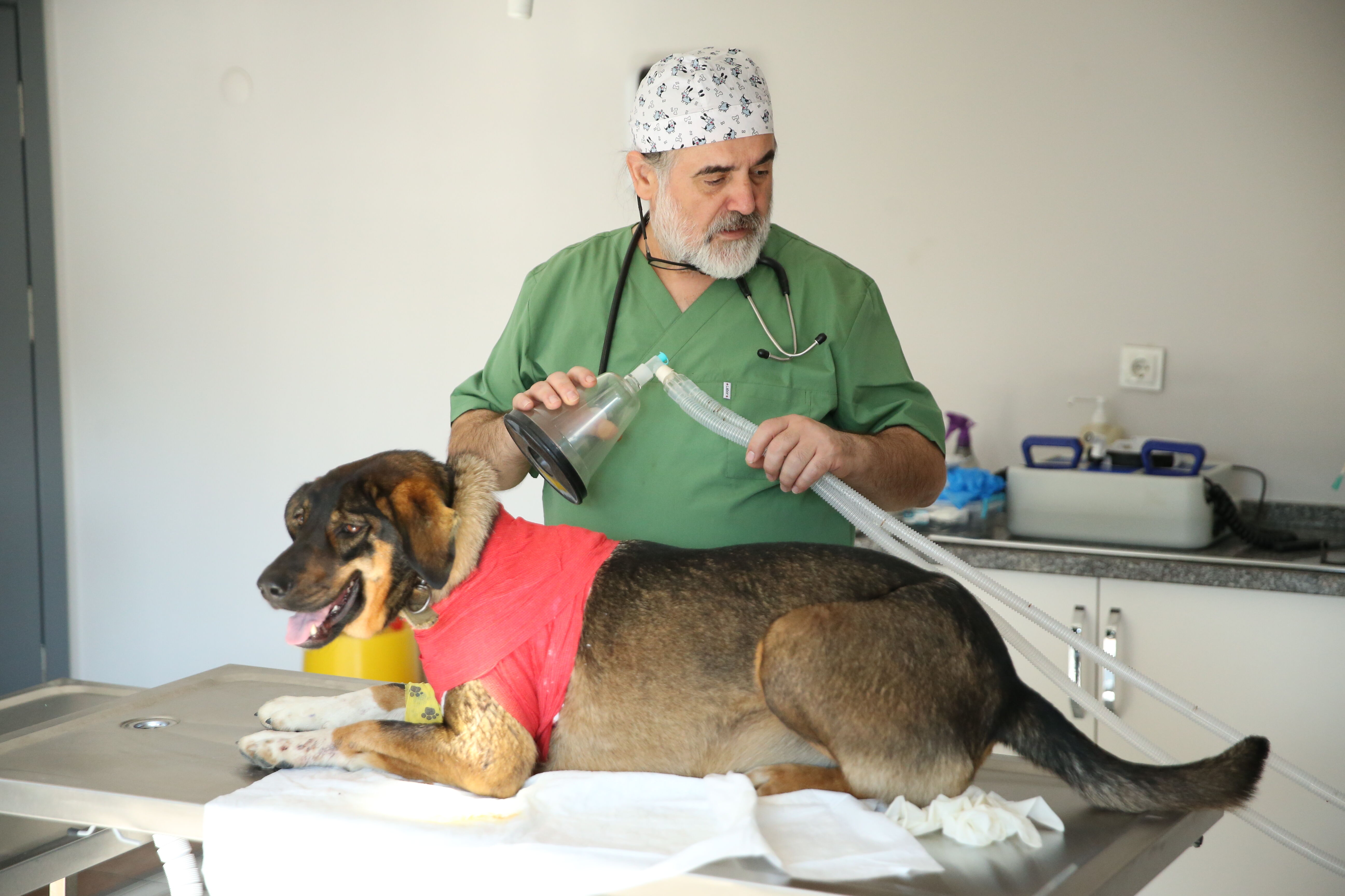 Akciğerinde hasar oluşan ve bazı kemiklerinde kırıklar oluşan köpek, başarılı geçen ameliyatla müşahede altına alındı.