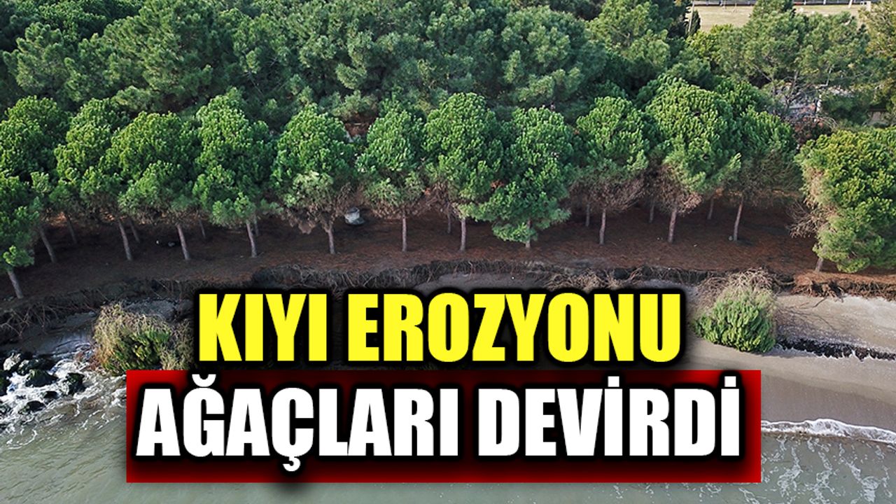 Yalı Mahallesi sahilinde dalgalar, kıyıdaki ağaçlık alanı aşındırdı.