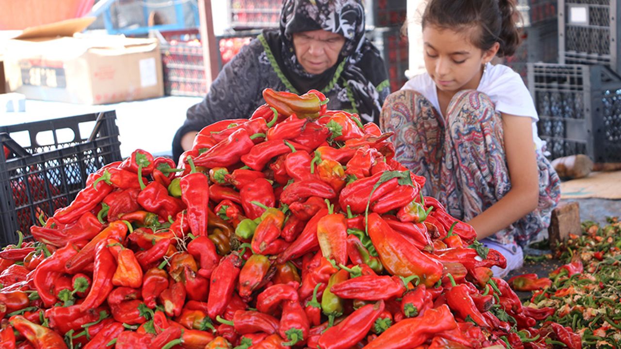 Tadı ve kokusuyla birçok yemeğe lezzet katan, çiğ köftenin olmazsa olmazı pul biber, kavurucu sıcakta zahmetli bir sürecin ardından tezgahlardaki yerini alıyor. Güneydoğu Anadolu Projesi (GAP) ile birlikte sulu tarımın yaygınlaştığı Şanlıurfa'da ilkbaharda ekilen, bakım ve sulamanın ardından hasat edilmeye başlanan kırmızı renkteki biberler, kamyonlarla pazarlarla getiriliyor.