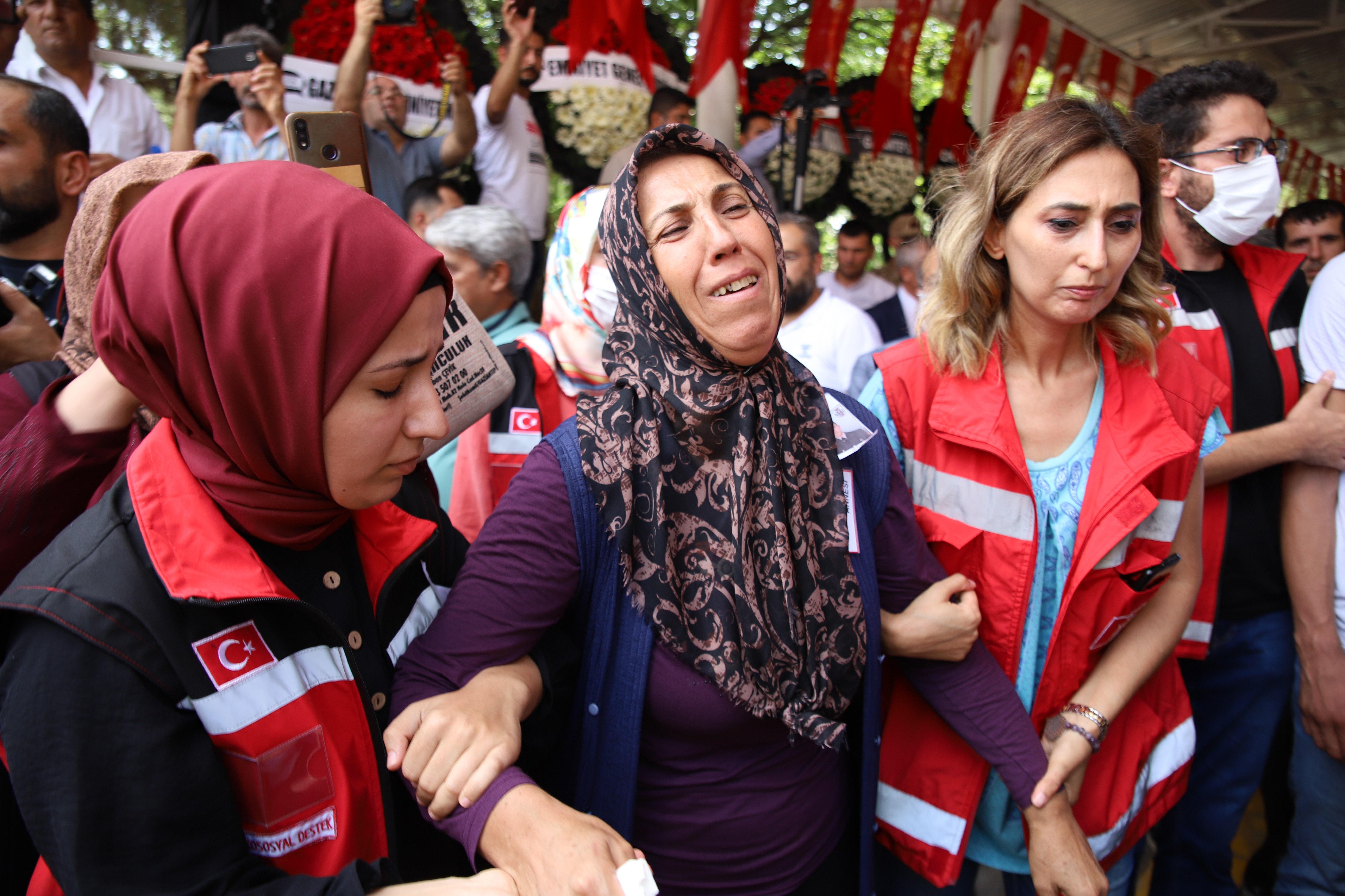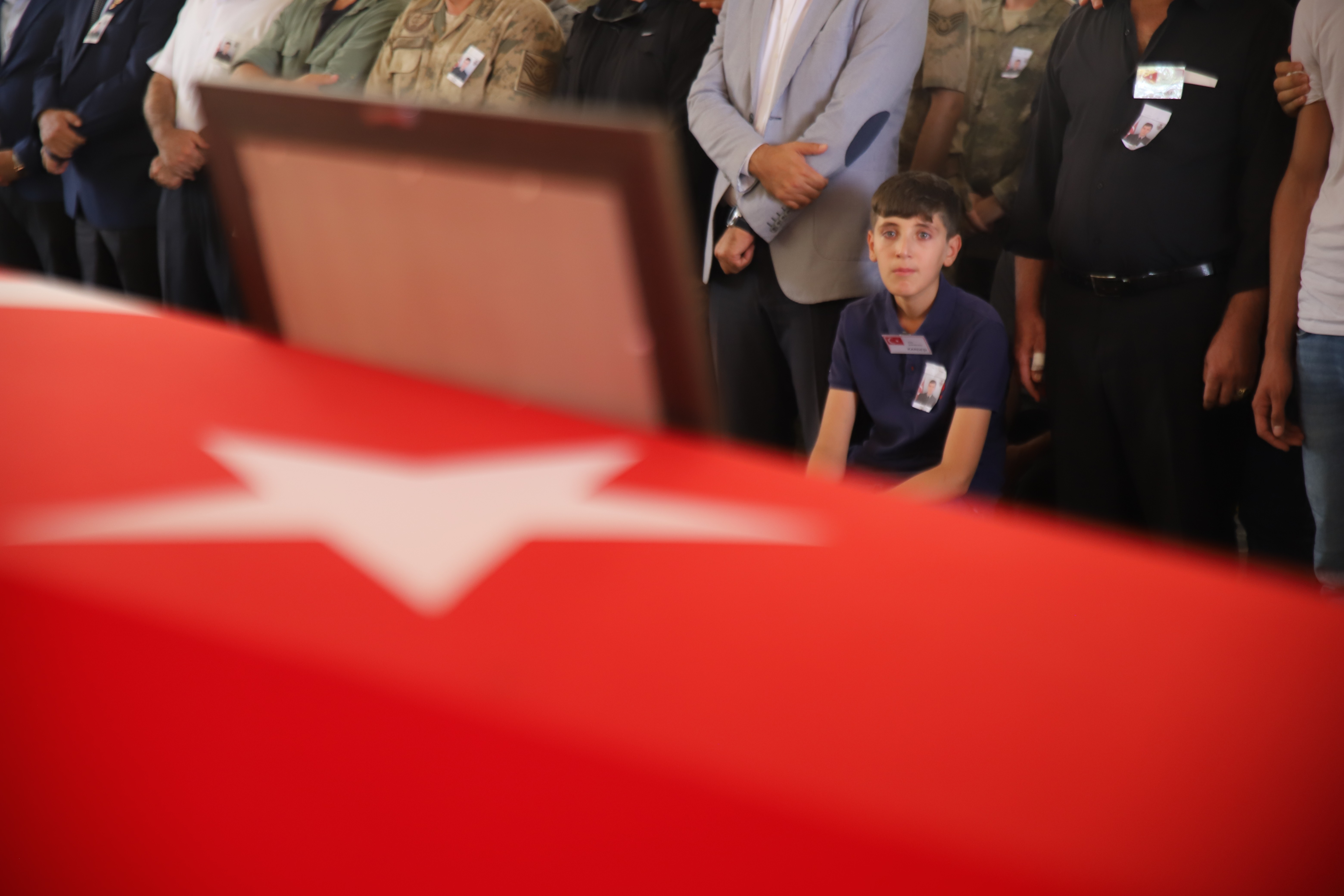 Cenaze töreninde şehidin kardeşlerinin gözyaşlarına boğulması yürek yaktı.