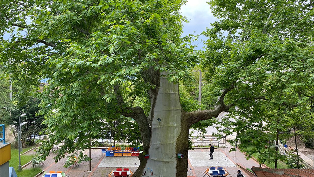 Devasa ağacın etrafında çocukluğu geçen 68 yaşındaki Ali Baydil, "Bu tarihi bir çınardır. Ölçümlere göre bin yıllık bir tarihi var. Buraya ziraat mühendisi geldi, kontrol etti. Ağacın 1 metresi 100 senede dolduruluyormuş. Ölçtüm, 10 metrelik çapı var. Tarihi bir çınar. Burada Yunanlar 1. Dünya Savaşında mahallemizden 40 kişiyi asmışlar, askere gidecek eli silah tutacak olanlardan. Ağaca asmışlar. Sonra kaçarken de dedelerimiz yakalıyor aynı yunan askerlerini. Onları da burada asmışlar. Böyle bir tarihi var. Burada 40 kişiyi astıkları için kan damlıyor derler. Yukarıdaki şehitlikte hepsinin isimleri var" dedi.
