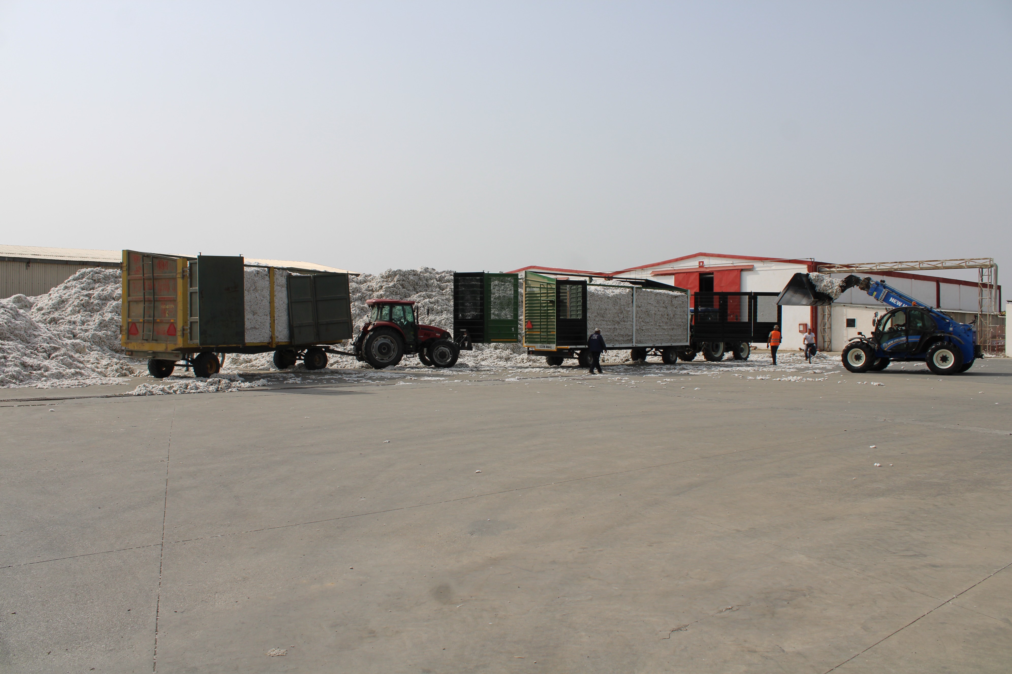 Kantardan geçen her römork, pamuklardaki numune ve tav oranı alındıktan sonra iş makineleri ile boşaltılıyor. Oldukça yoğun günlerin yaşandığı TARİŞ depolarında alımlar çift koldan devam ediyor.