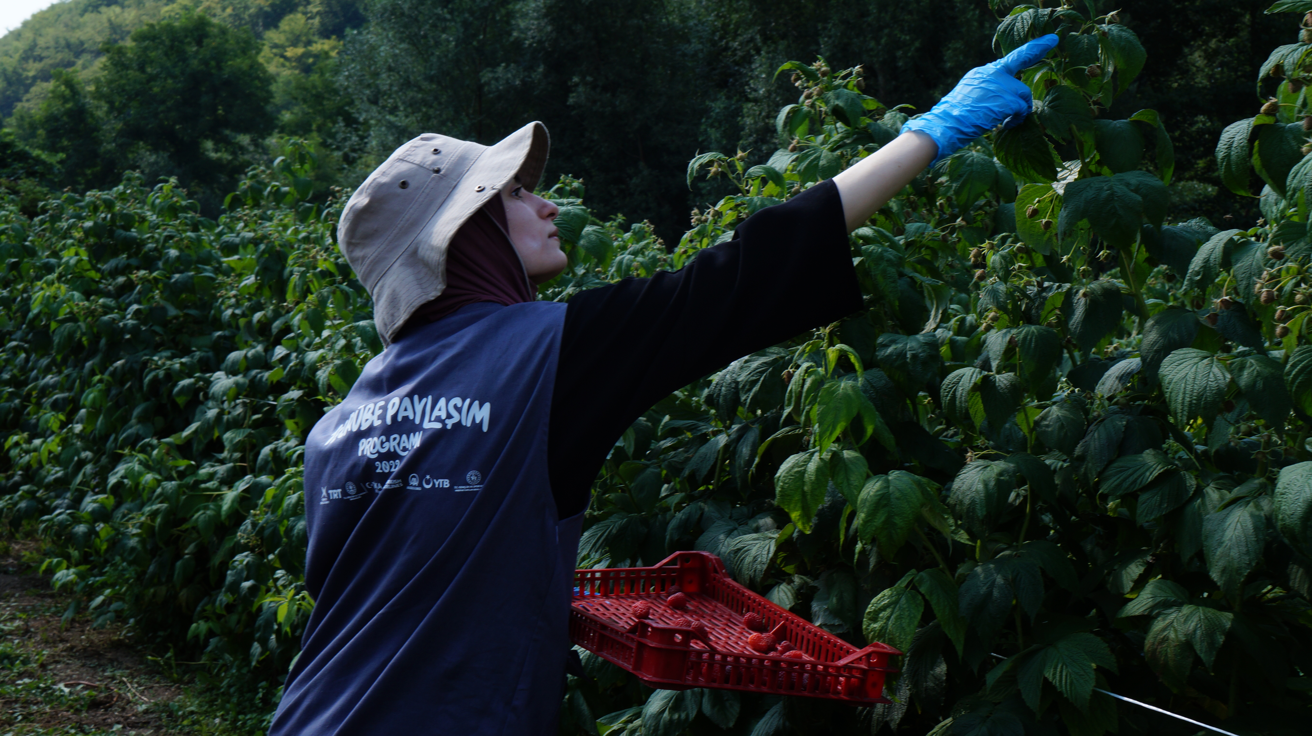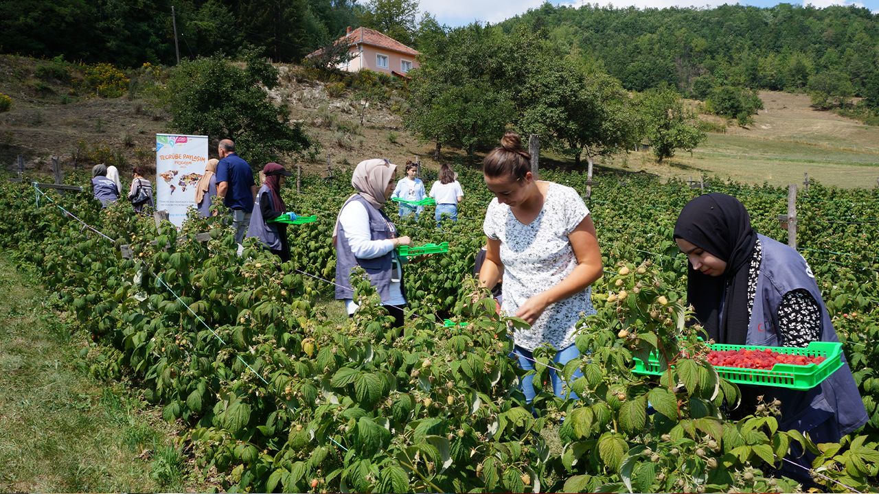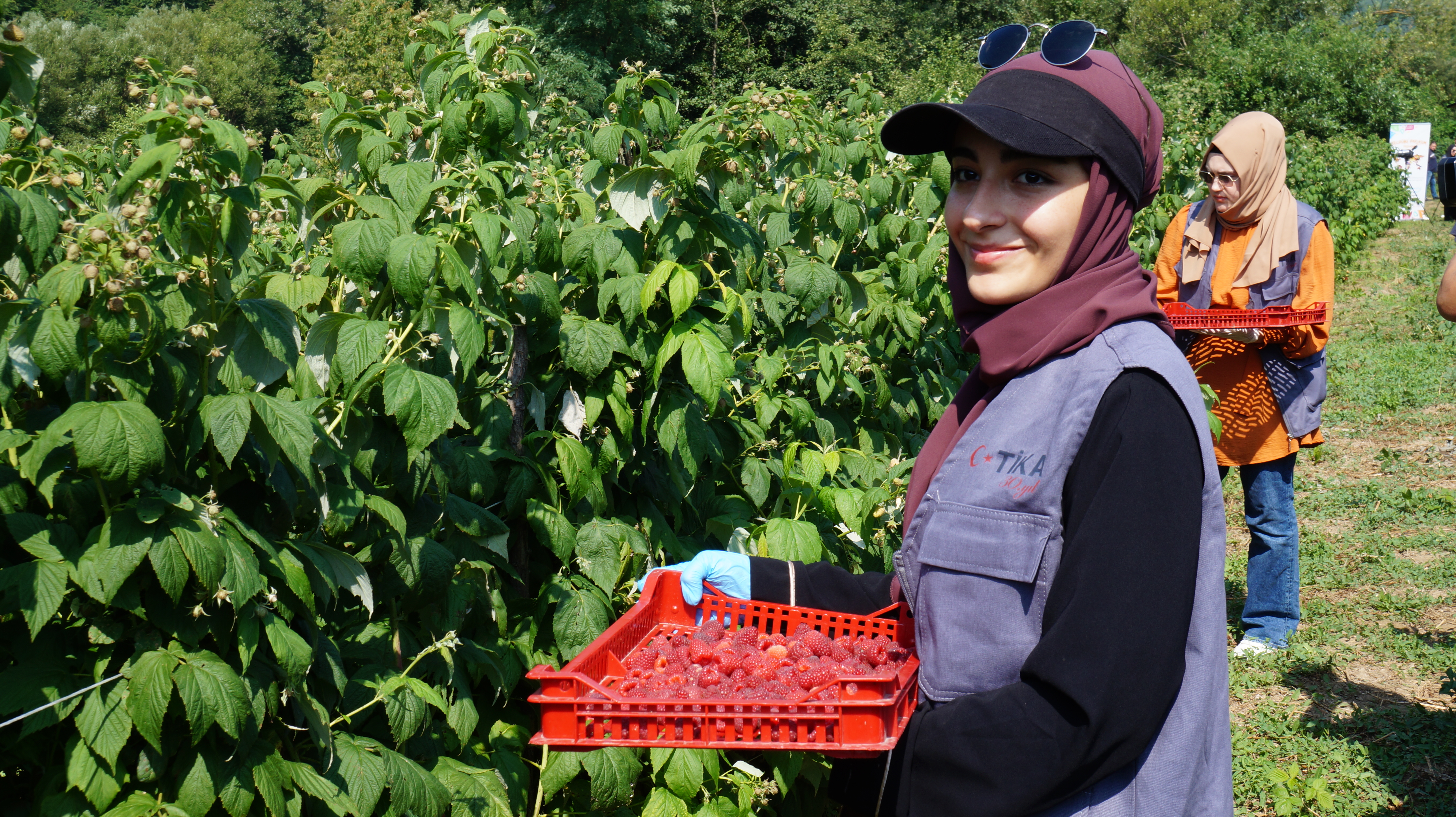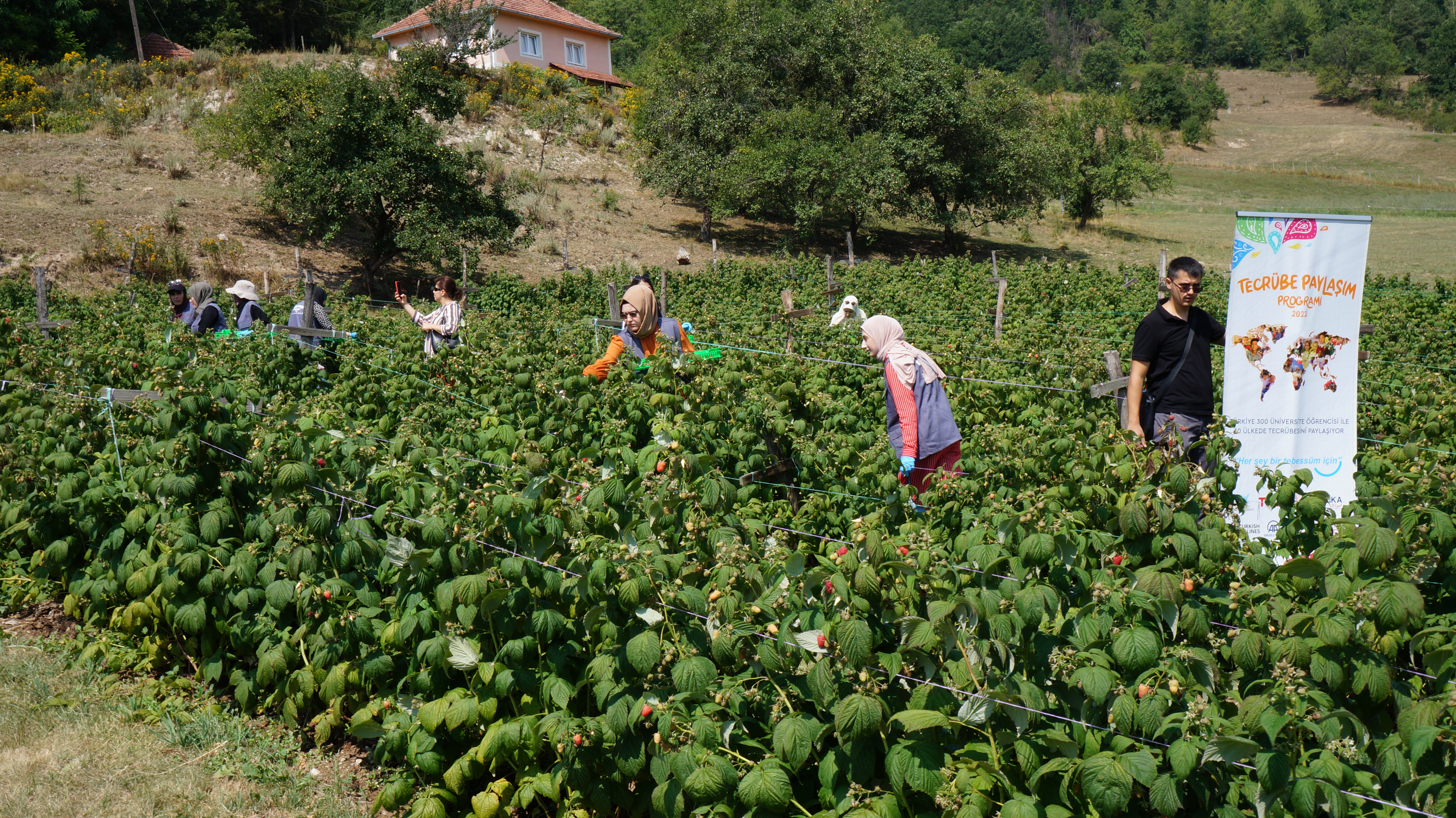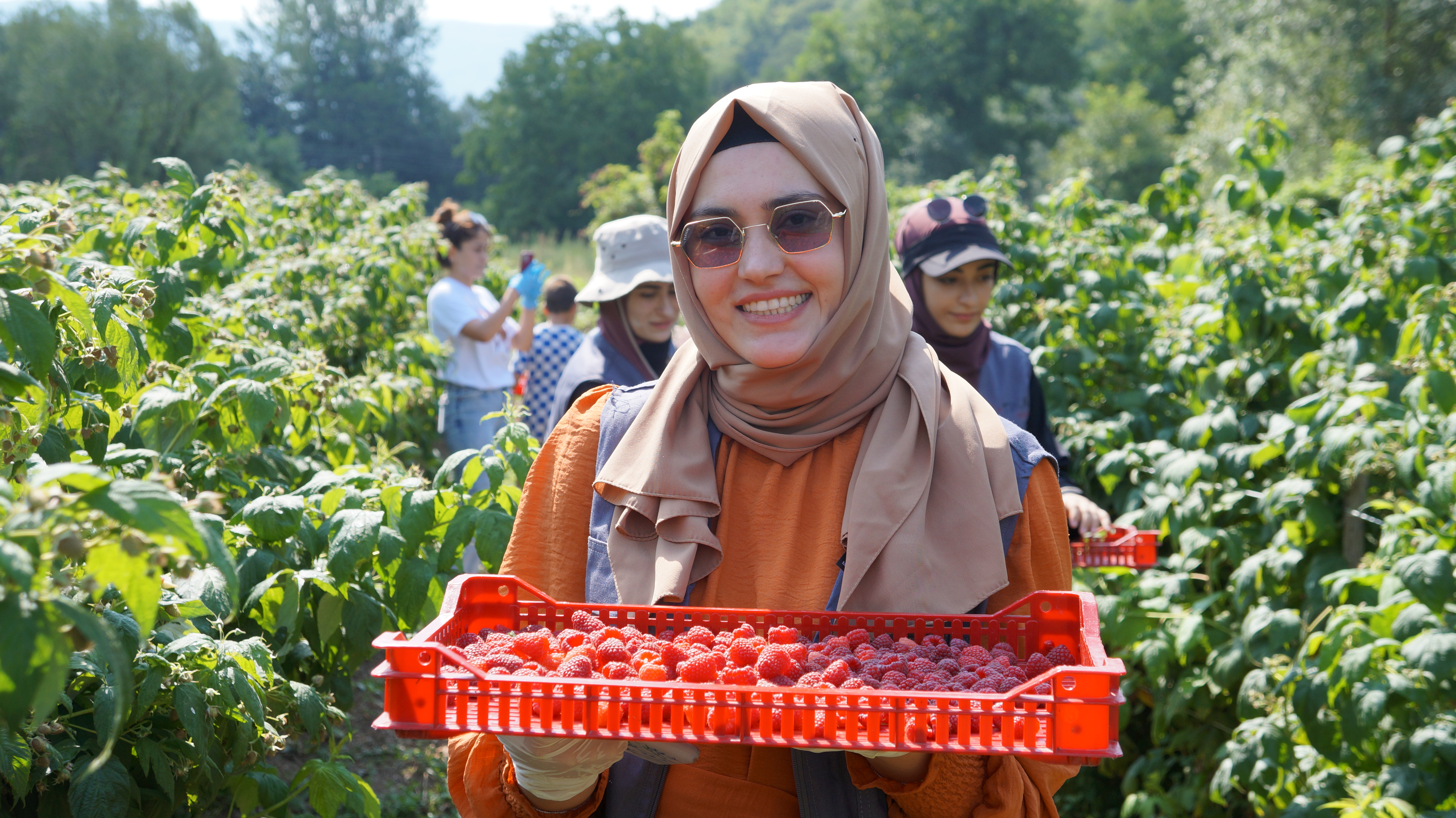 Gönüllü öğrencilerden Elif Gülmohar, tecrübe paylaşımı kapsamında farklı kültürleri tanıma fırsatı bulduğunu ifade ederek ilk defa ahududu topladığını söyledi.