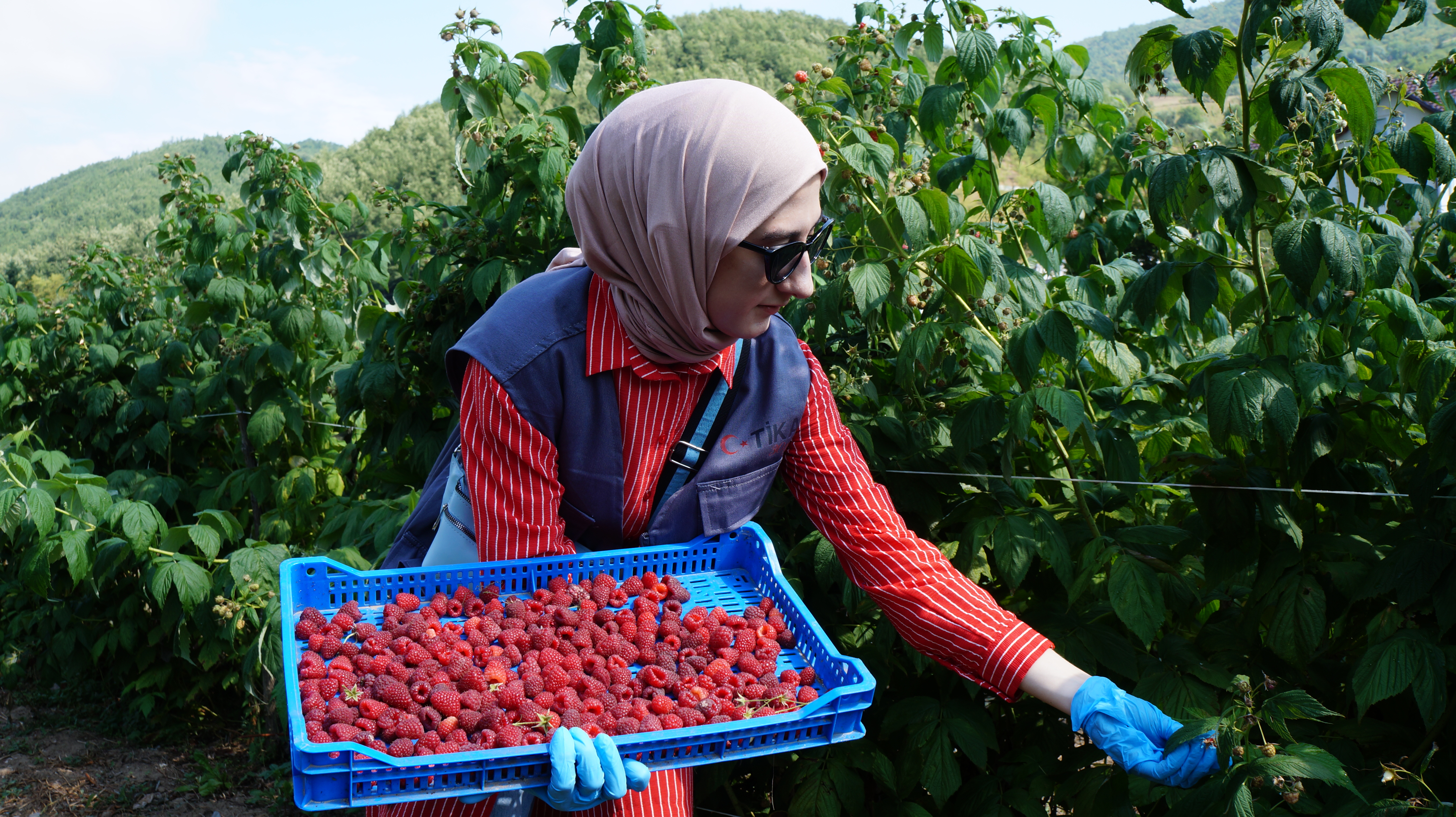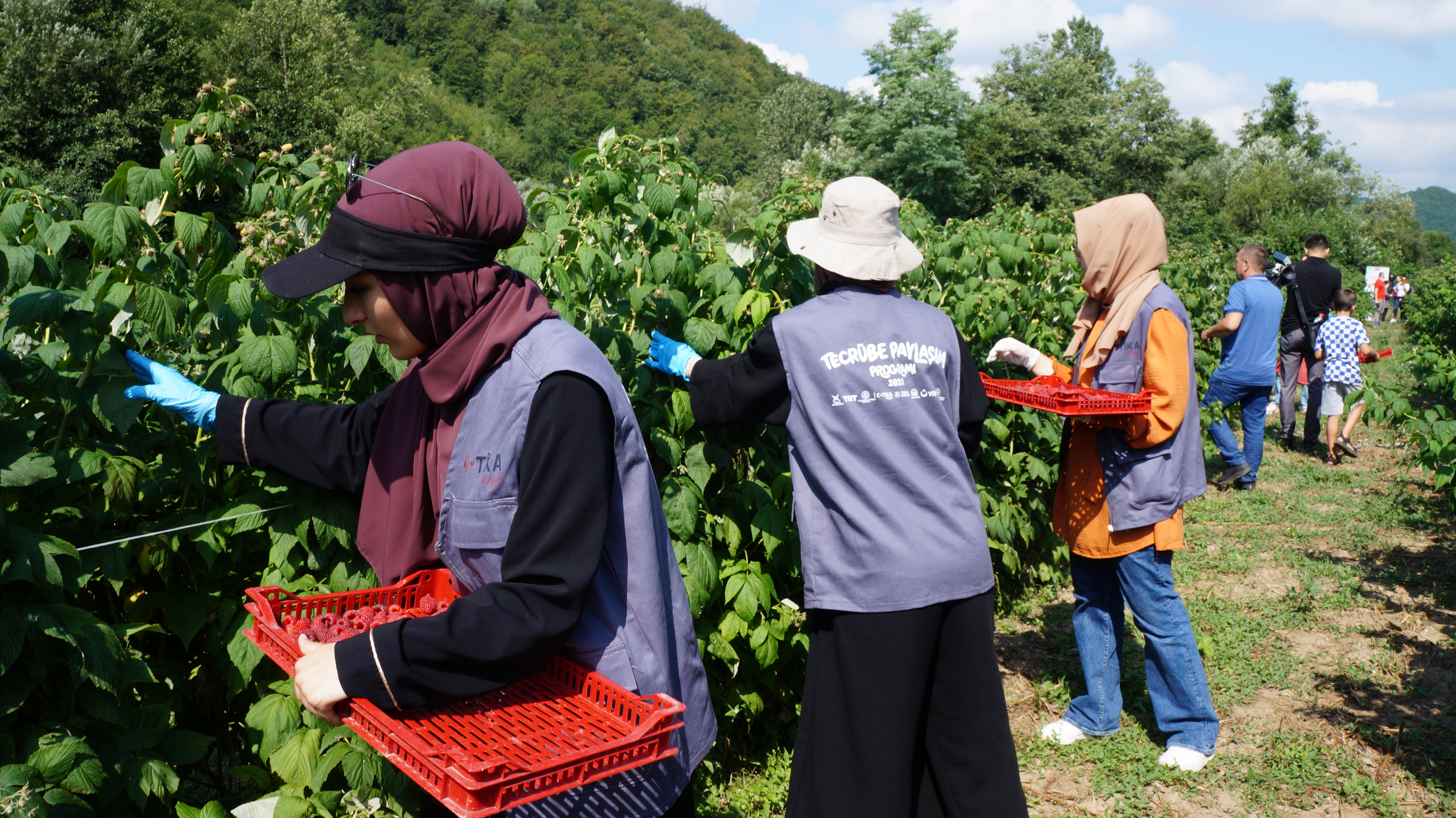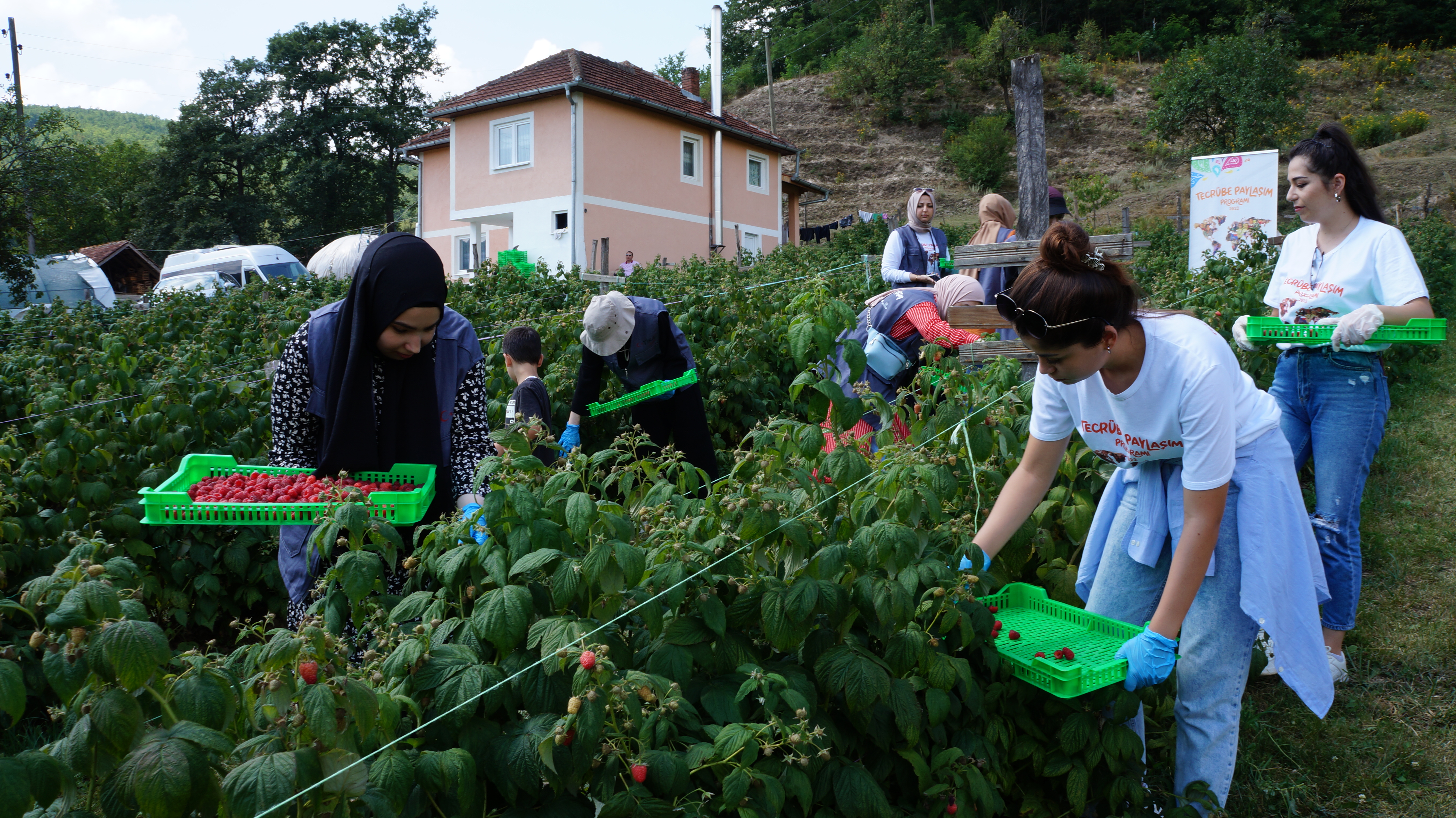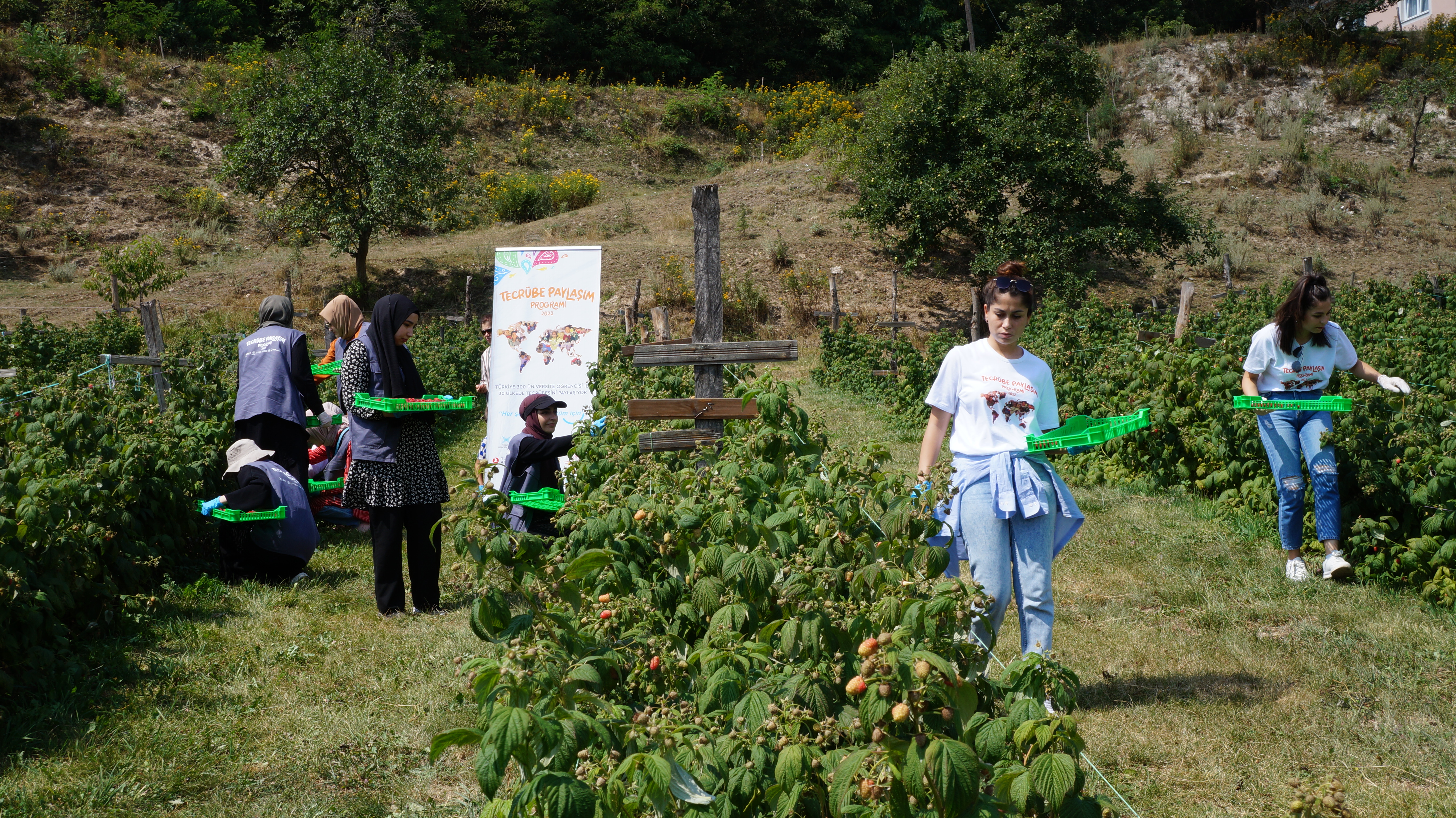 Gönüllü öğrencilerden Elif Gülmohar, tecrübe paylaşımı kapsamında farklı kültürleri tanıma fırsatı bulduğunu ifade ederek ilk defa ahududu topladığını söyledi.