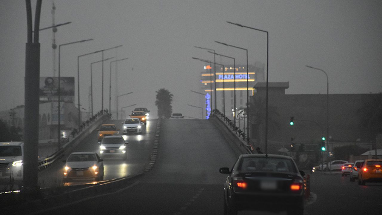 Irak'ın Kerkük kentinde etkili olan toz fırtınası yaşamı olumsuz etkiledi. Toz fırtınası nedeniyle trafikte görüş mesafesinin daraldığı görüldü. aa