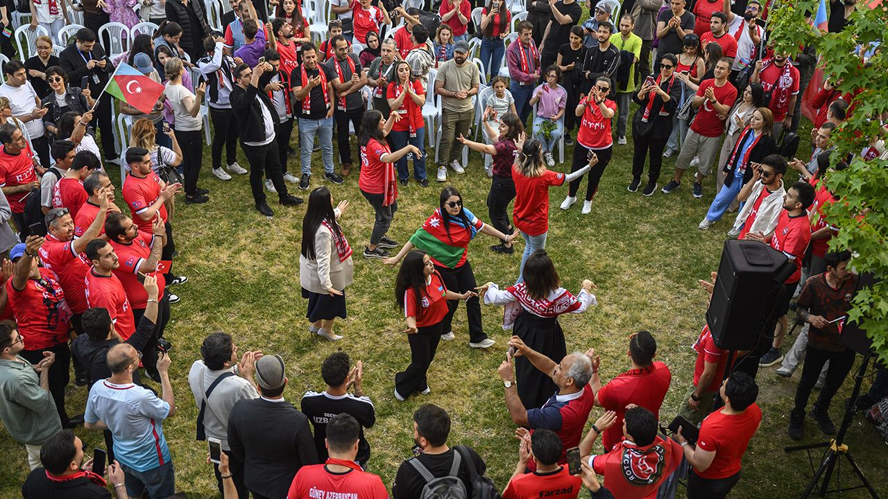 Tractor forması giyen çok sayıda taraftar, Türkiye ve Azerbaycan bayrakları taşıdı.
