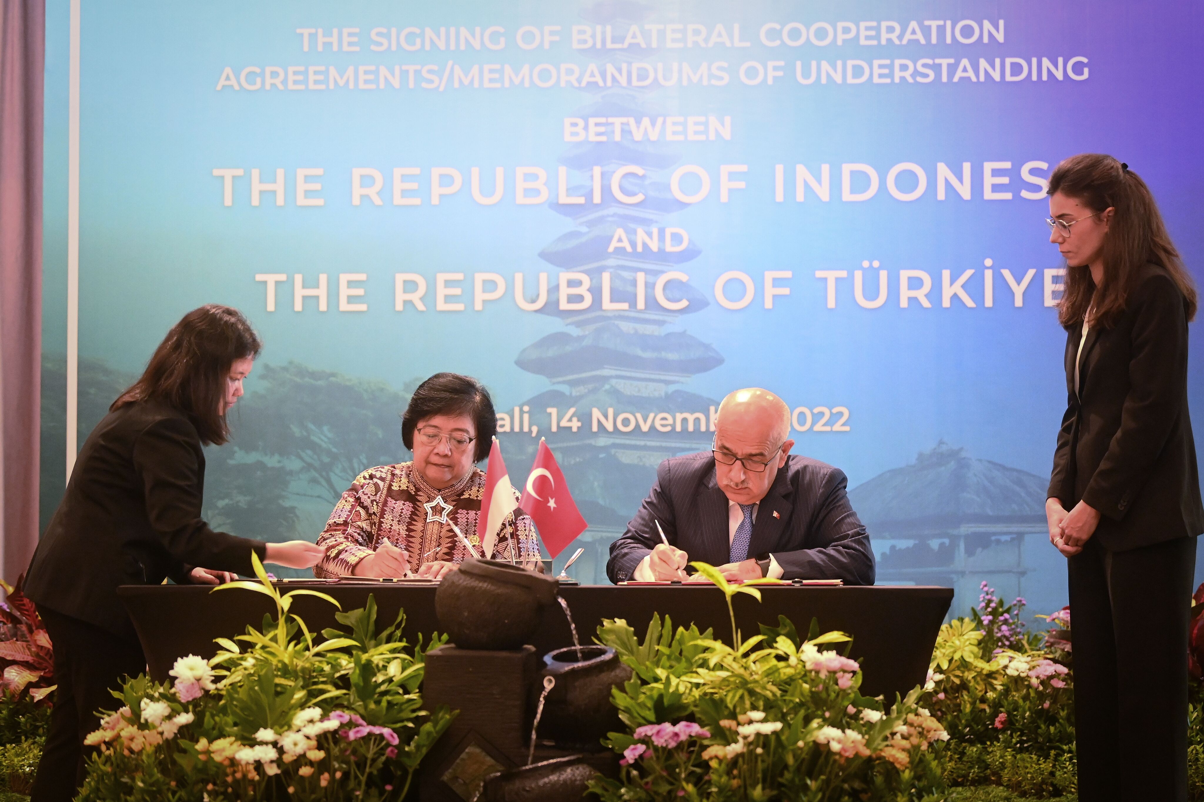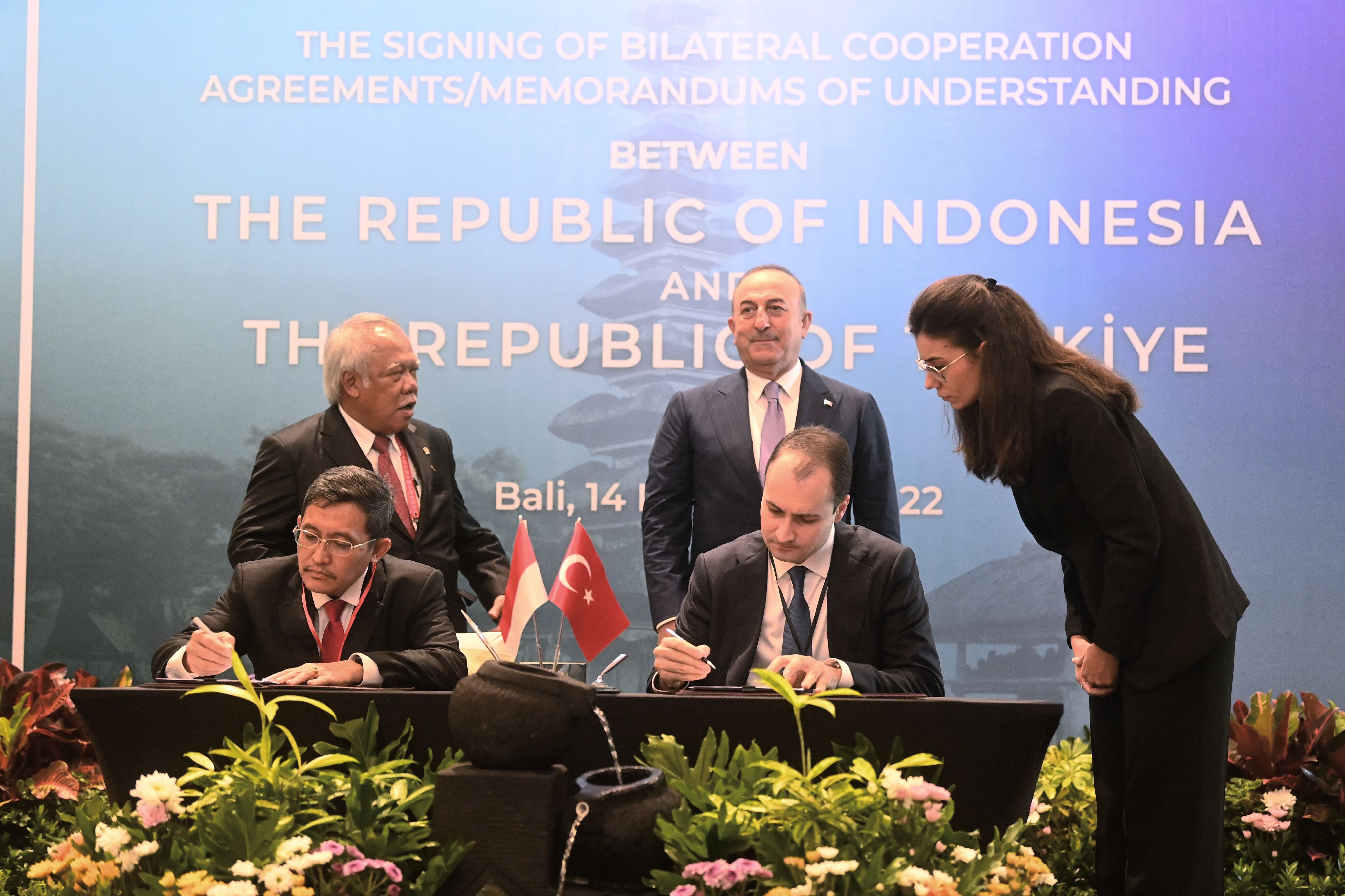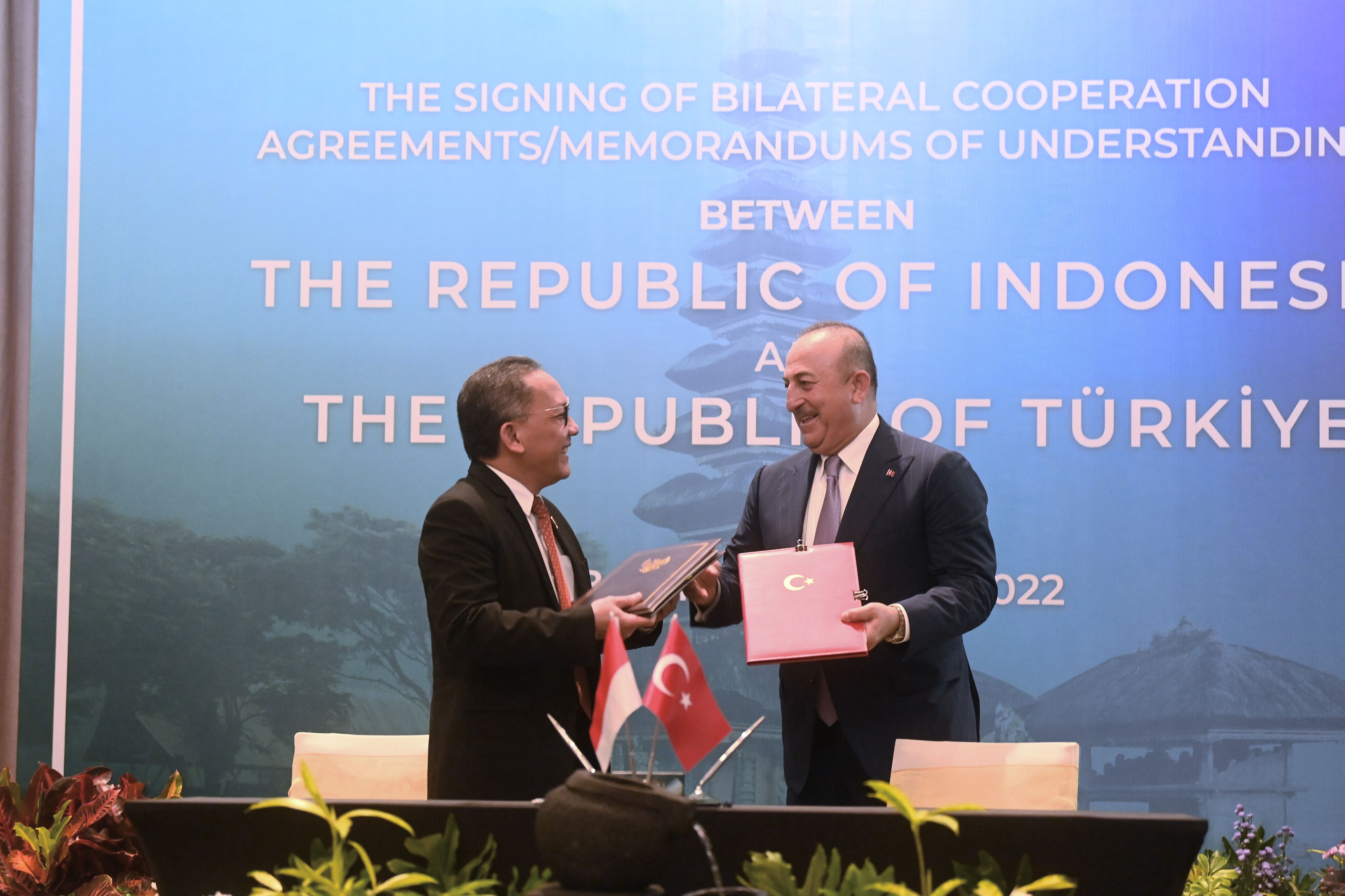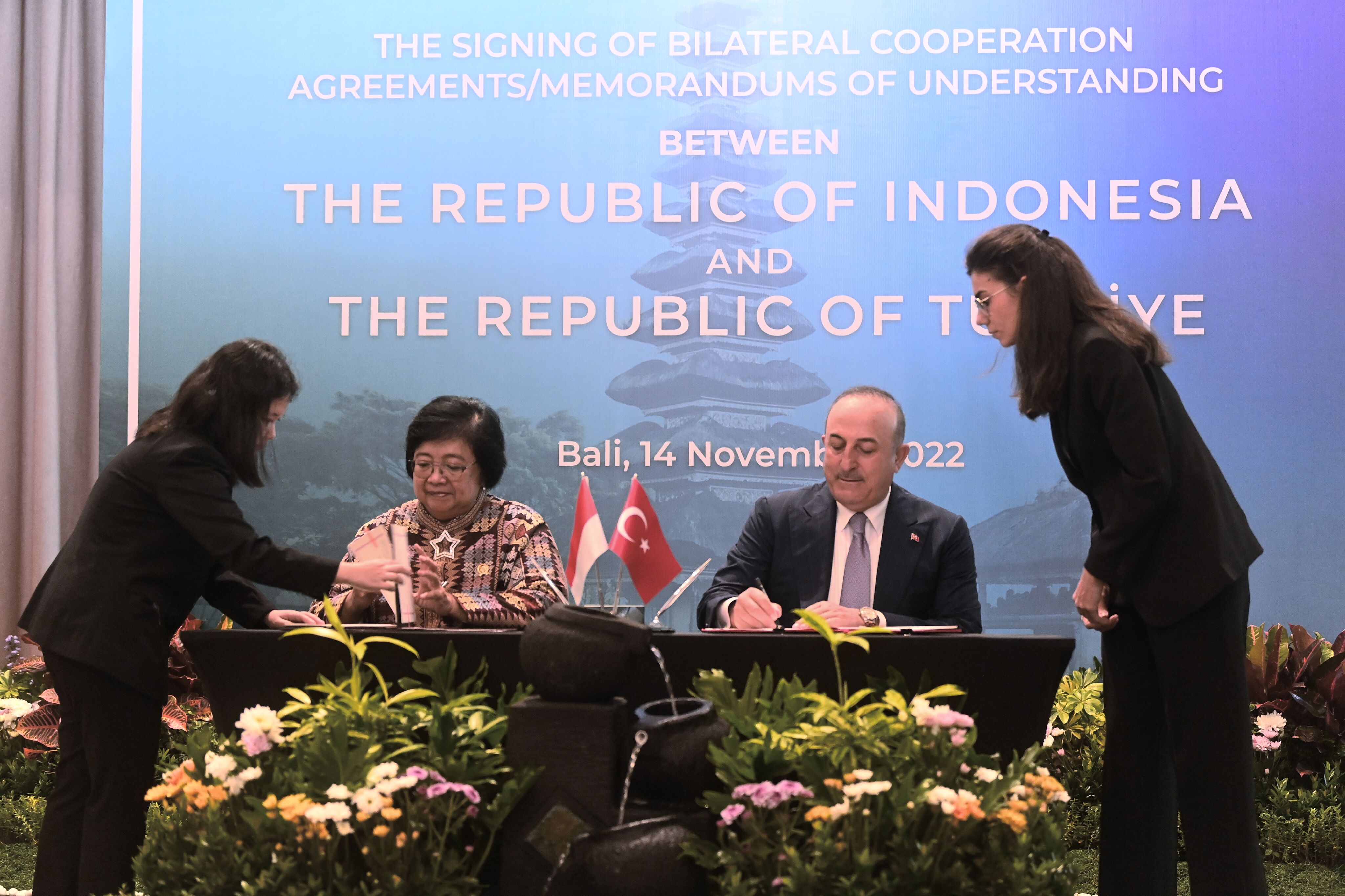 Endonezya'nın Bali adasındaki G20 Zirvesi öncesinde, Hilton Bali Resort'ta Türkiye ve Endonezya arasındaki ikili anlaşmalar için imza töreni düzenlendi.