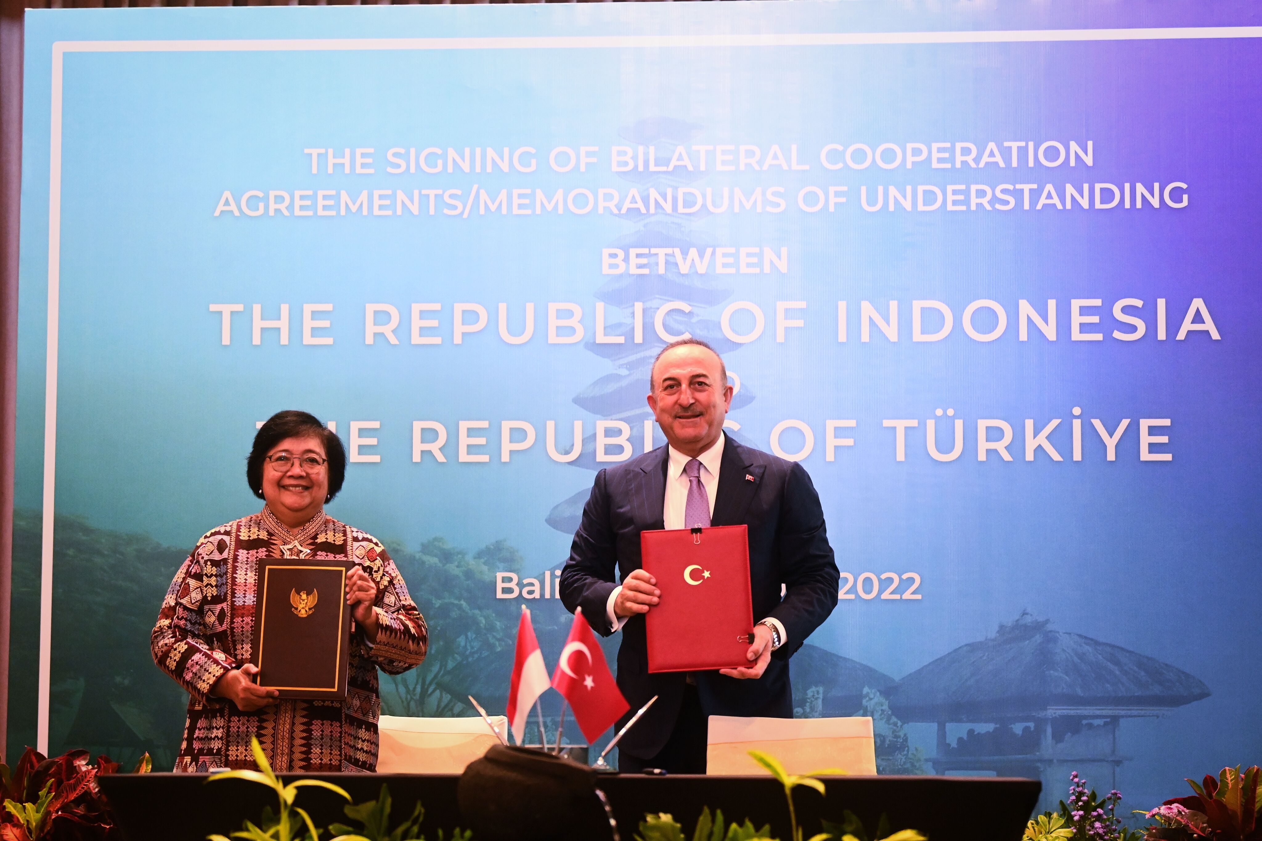 "Türkiye Cumhuriyeti Hükümeti ile Endonezya Cumhuriyeti Hükümeti Arasında Çevre Alanında İşbirliği Mutabakat Zaptı"na, Dışişleri Bakanı Çavuşoğlu ile Endonezya Çevre ve Orman Bakanı Siti Nurbaya Bakar imza koydu.