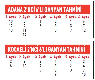 Günün belki de en ilginç sonuçlar bitebilecek koşusunda 1 numara BERTUĞHAN liderliği almaya çalışacak. 6 numara STEPHENSON da önde gitmeyi seven bir isim olduğundan liderliği bu iki ismin çekişmesi belirleyecek. Koşu bu iki ismin sonlarda yorulmasına neden olursa 5 numara HIZLI VEYSEL ve 2 numara DELİ MESUT bundan faydalanacaktır. Sıralamam; 1-6-5-2