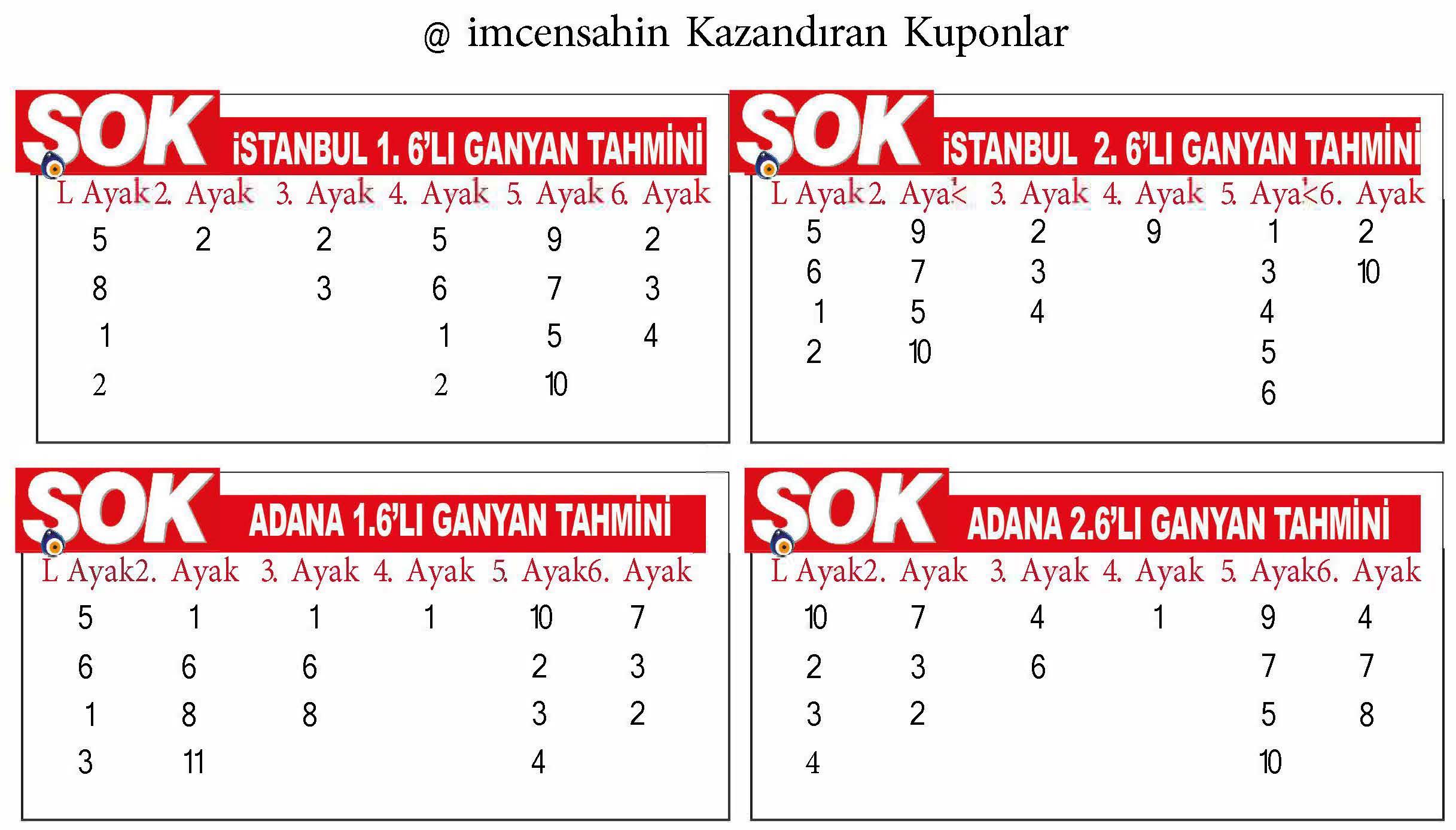 İstanbul'da bu pist ve mesafede katıldığı son koşusunda 54.5kg ile 1.24.32 derece yapan 6 numara KAZIM HAN 50kg çıkacağı koşuda favorim. 4 numara FLAYING JO, 5 numara TRUVA MEMET ve 2 numara ESATIM rakip olarak yazacağım isimler. Sıralamam; 6-4-5-2