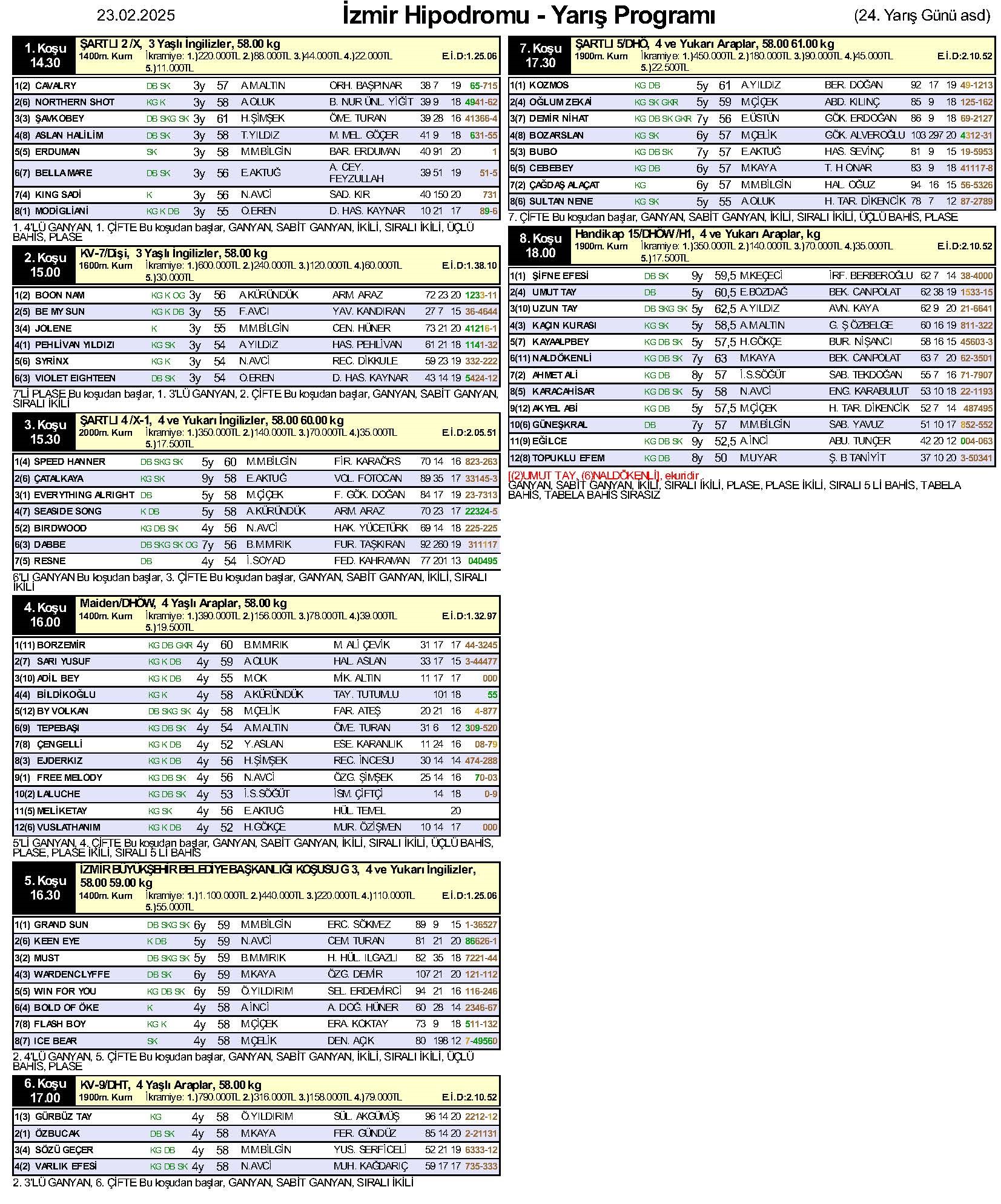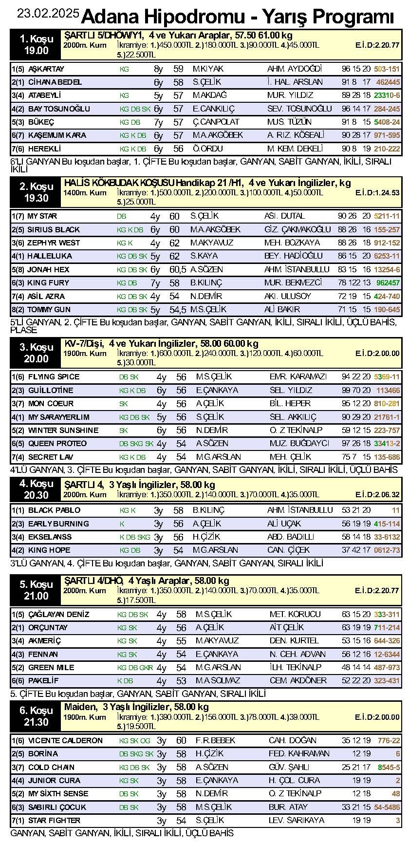 ADANA KOŞU TAHMİNLERİ / 23.02.2025