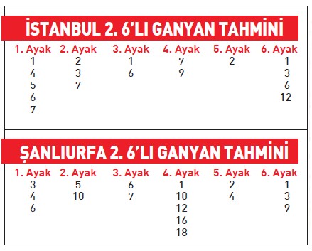 İstanbul kum pistinde 1.38.59 derece ile 3.lük elde eden 6 numara KANATLANAN, 1.39.19 derece yapan 1 numara KARBİR öncelikli şanslı gördüğüm isimler olup, 7 numara LADY STONE ve 3 numara AYCASA sonraki ihtimaller olarak önereceğim isimler. Sıralamam; 1-7-3