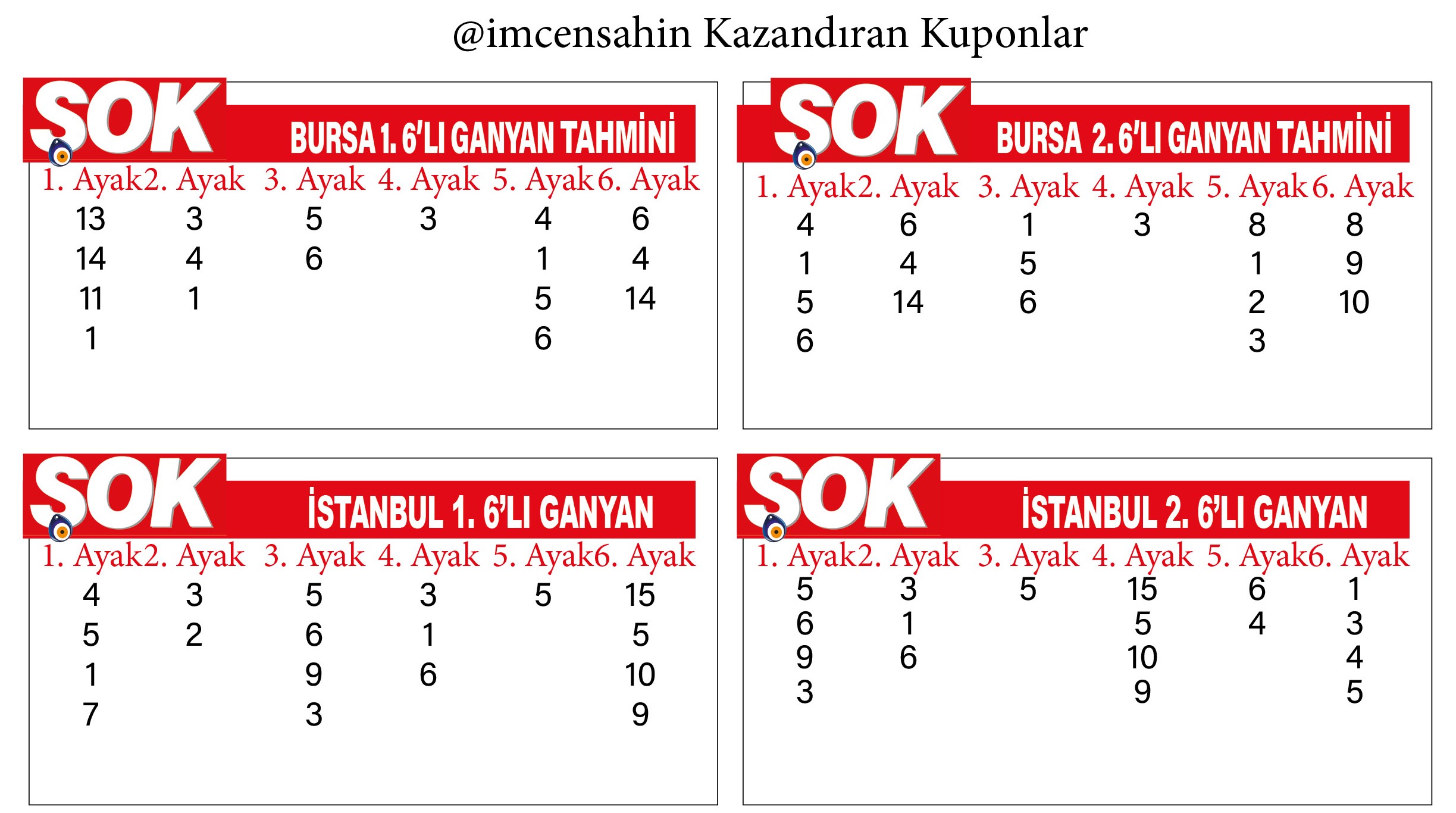 Kazandığı son iki koşuda sürprize imza atarak kupon yırttıran 1 numara HADİ BAKALIM farklı hipodrom ve jokeylerle yoluna devam ediyor. Yine değişen binicisi ile nasıl sonuç alacak izleyip göreceğiz. 3 numara MALĞUN HATUN istikrarlı performansı ile kuponumda yer vereceğim diğer bir isim. Son koşusundaki 2.liği ile taylık dönemindeki koşulara göz kırpan 5 numara MİNNAK ihmale gelmez. Sıralamam; 1-3-5