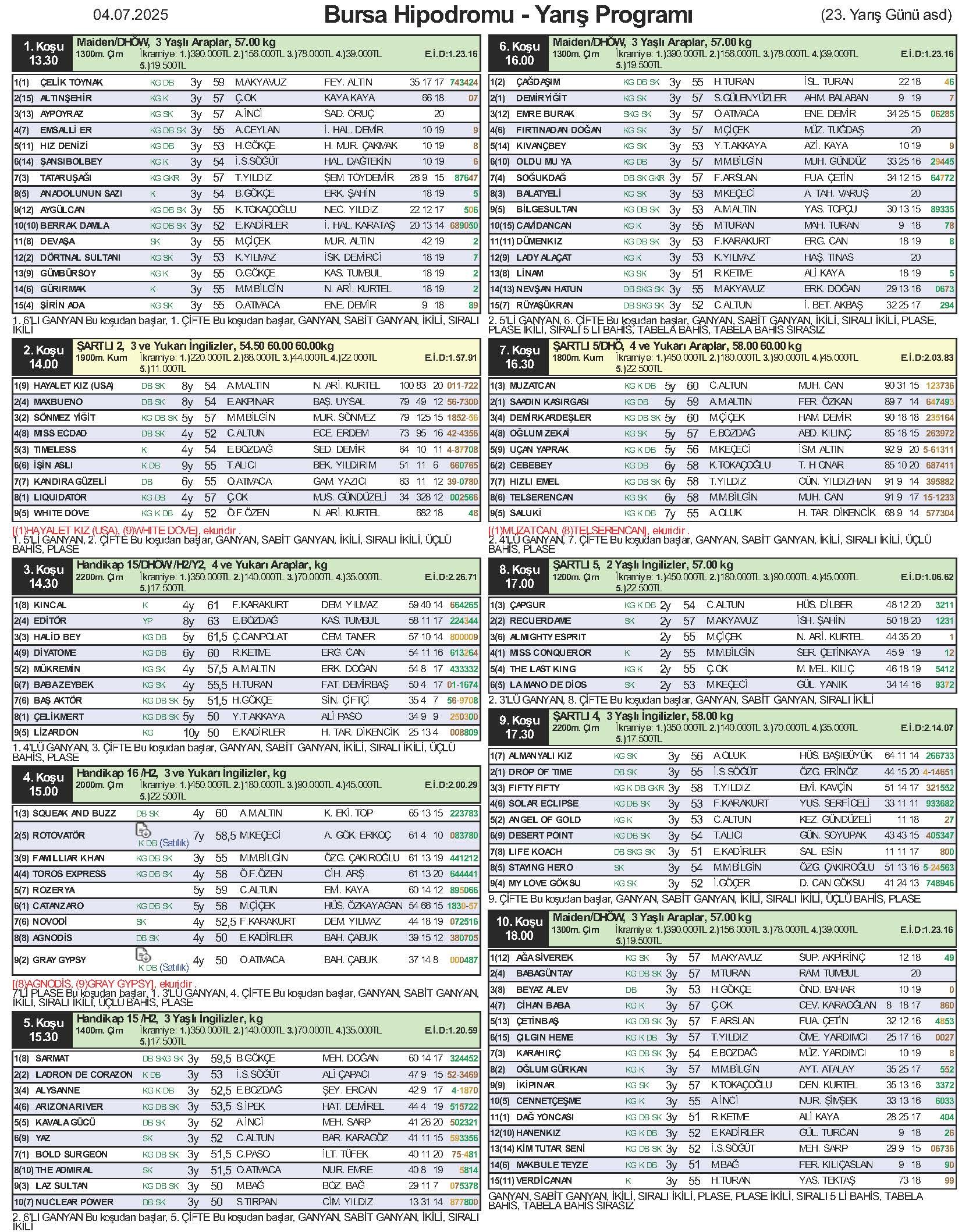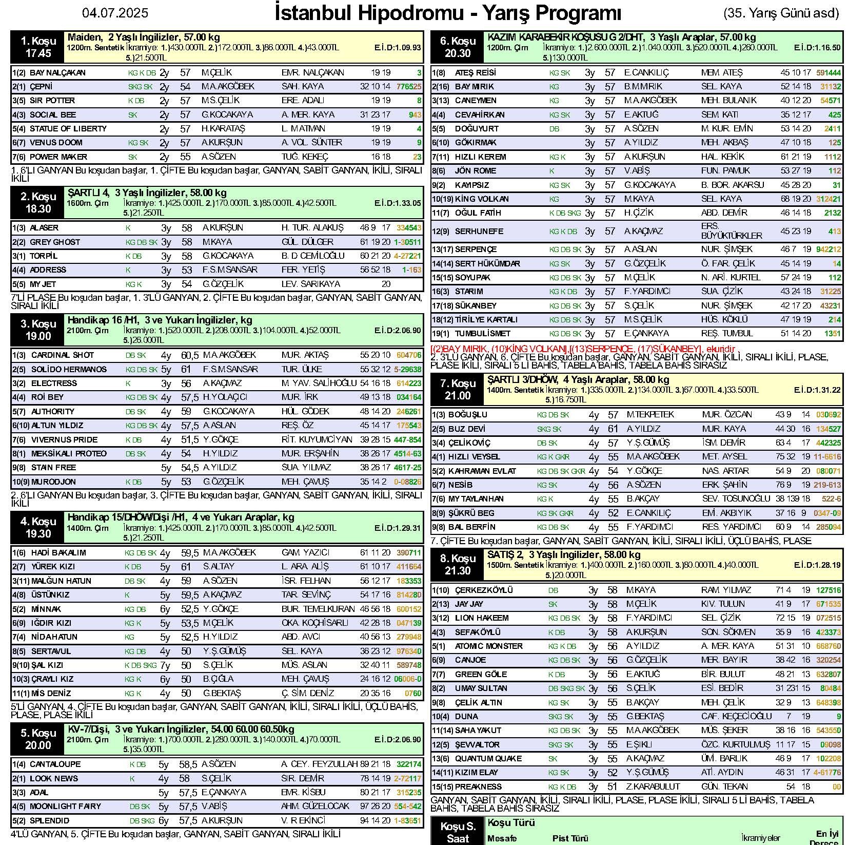 İSTANBUL KOŞU TAHMİNLERİ 04.07.2025