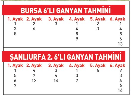Bursa pistinde katıldığı son koşusunda elde ettiği 5.lik sonrası yine bu pistte hafif kilo avantajını iyi değerlendireceğini düşündüğüm 5 numara ERMERHAN favorim. 3 numara YETİM İBRAHİM, 2 numara ALLER GÜLÜ ve 1 numara YAHYABEY GÜLÜ sonraki ihtimaller olup 4 numara ÇİMENGÖZ sürpriz olarak önereceğim isimler. Sıralamam; 5-3-2-1-4