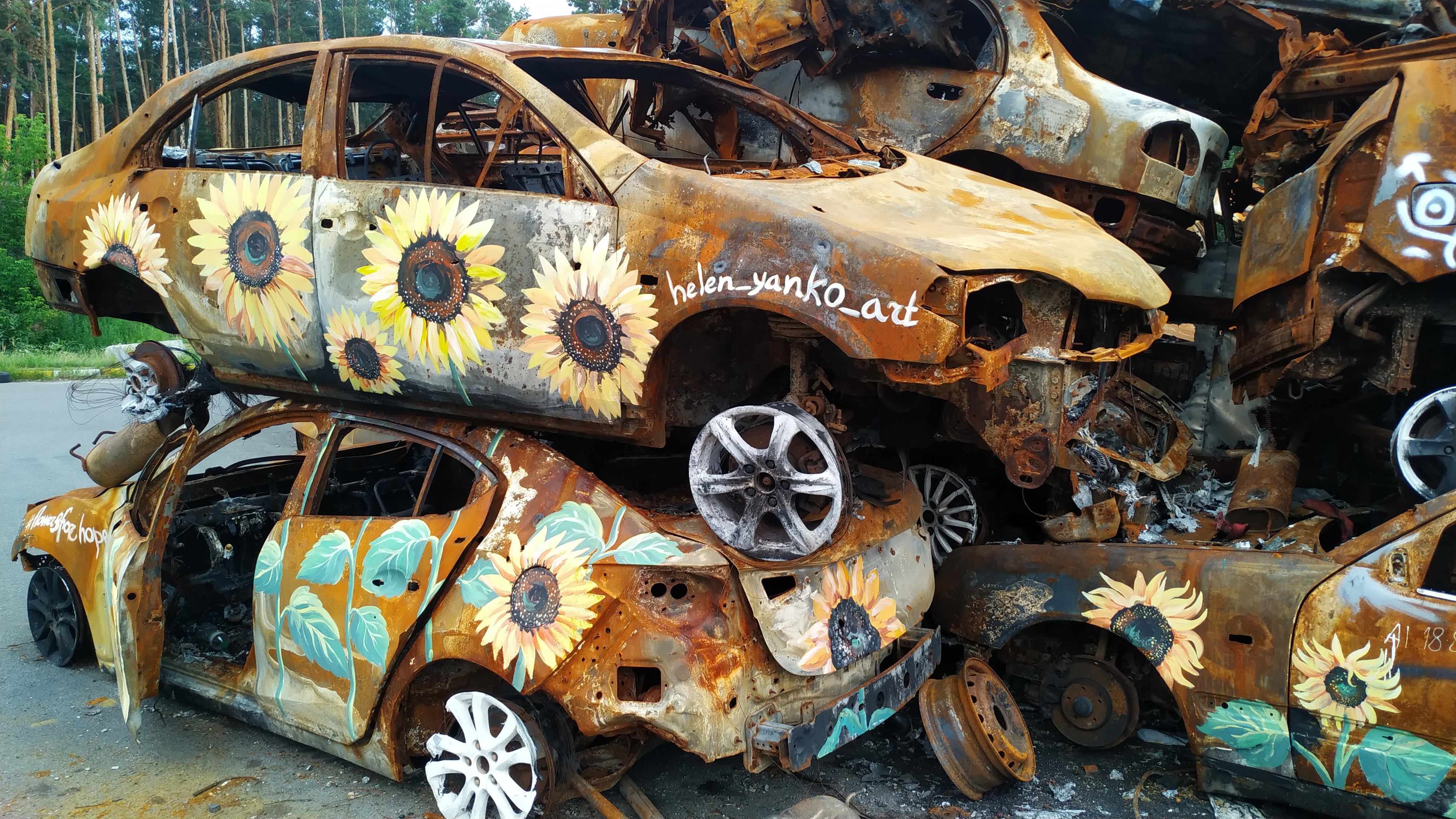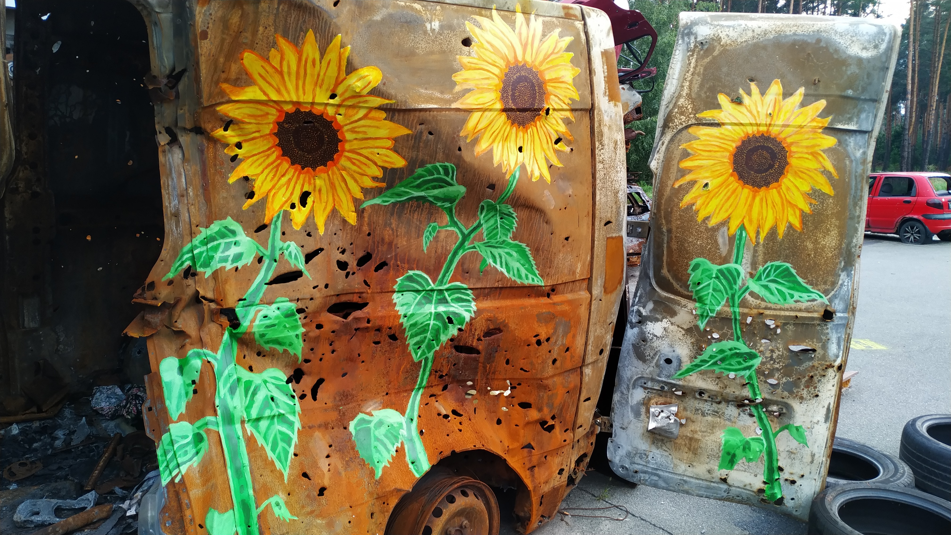 Rusya-Ukrayna savaşı devam ederken, Ukrayna ordusu tarafından ülkenin Irpin şehrinde Rus tanklarının ilerlemesini durdurmak için yıkılan bir köprüden çekilen araçlar, ABD’li ve Ukraynalı sanatçıların tuvali oldu. Sanatçılar hurdaya dönen araçlara çizdikleri ayçiçeği çalışmalarının dijital görüntülerini NFT olarak satışa sunmayı planladıklarını ve elde edilecek gelirin yeni projeler için kullanılacağını belirtti.