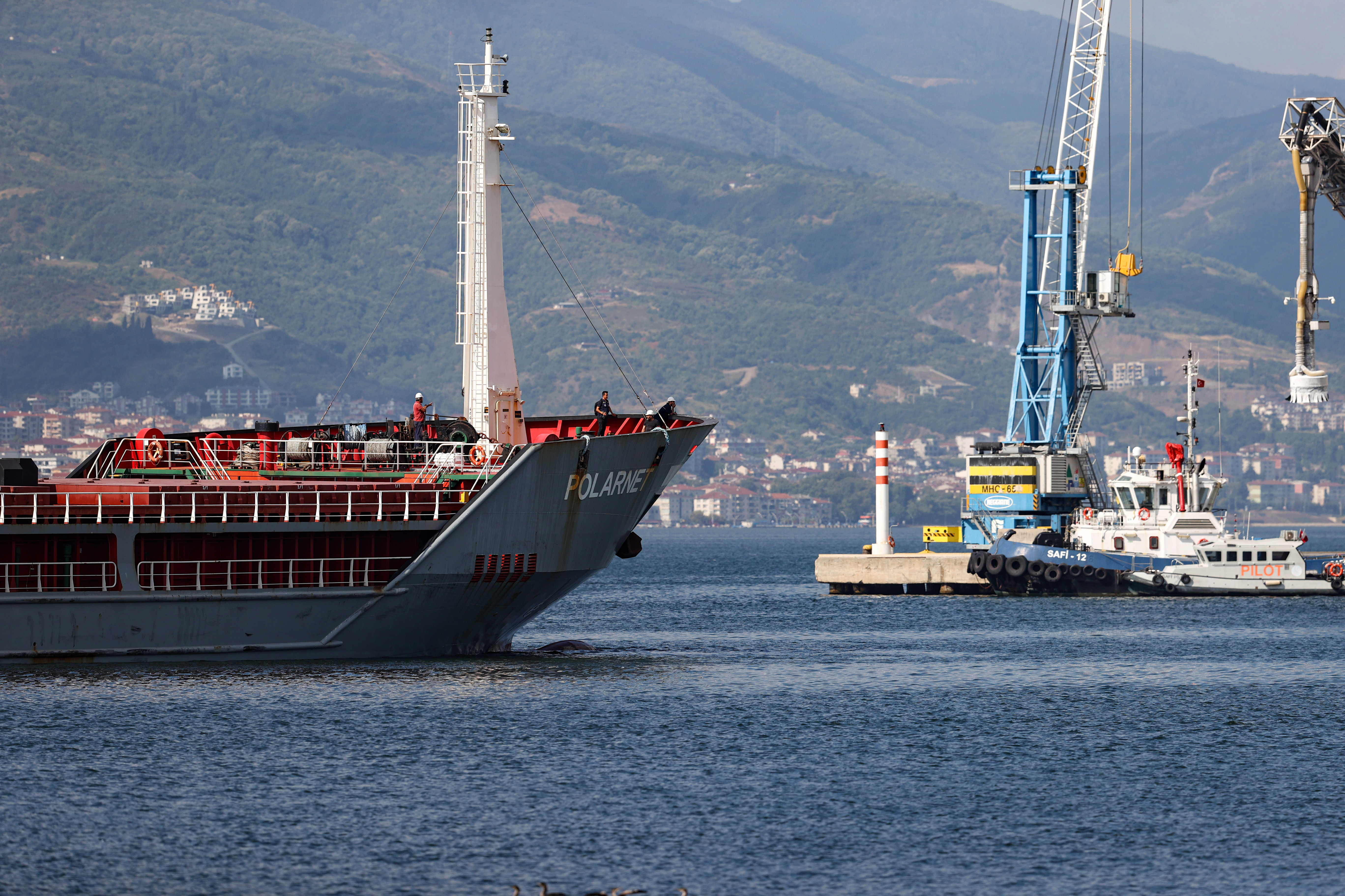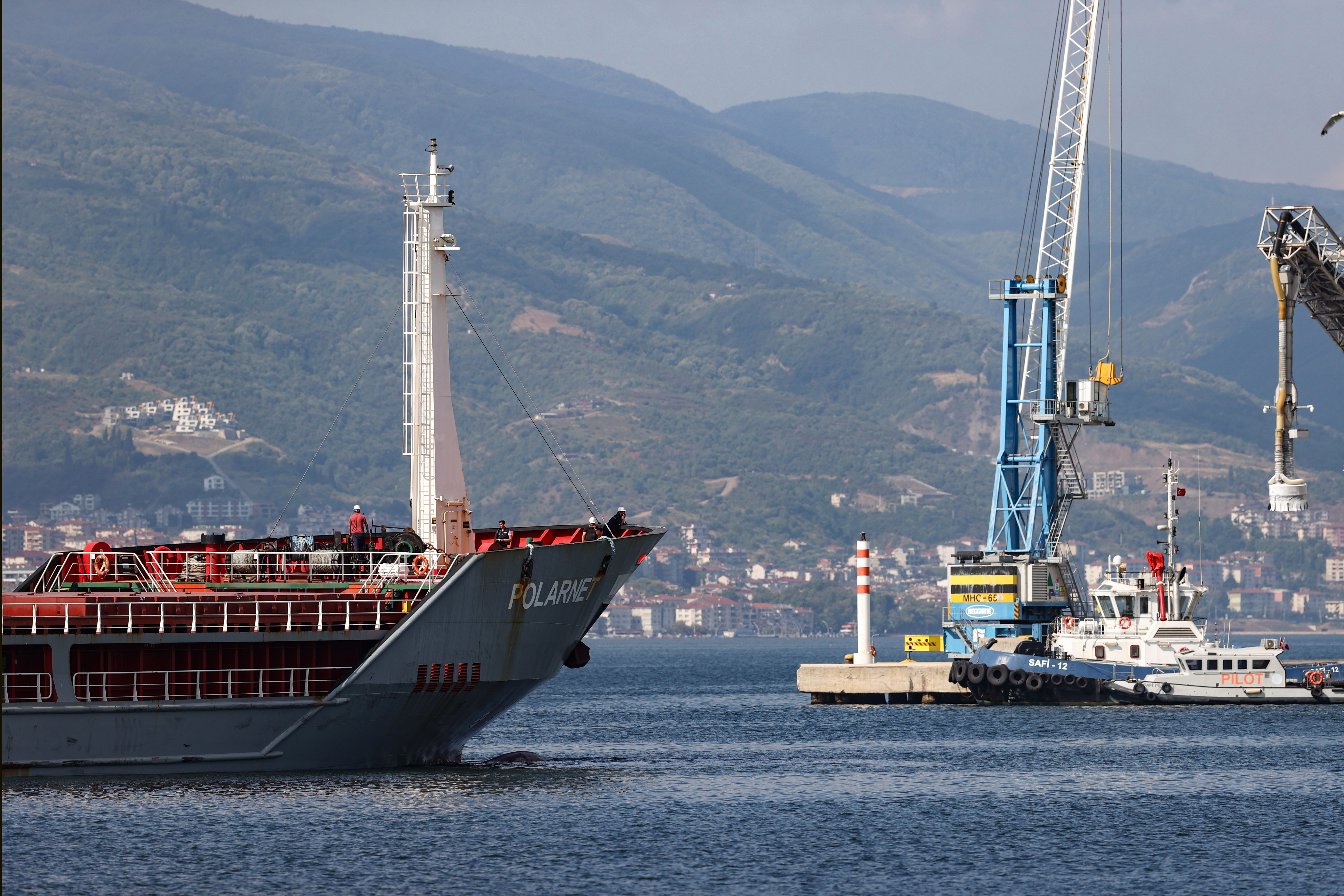 Ukrayna'nın Çornomorsk Limanı'ndan yola çıkan mısır yüklü Türk bandıralı "Polarnet" isimli gemi, Derince Limanı'na geldi. Limandaki işlemlerin ardından gemideki mısırın boşaltılmaya başlanması çalışmaları sürüyor.