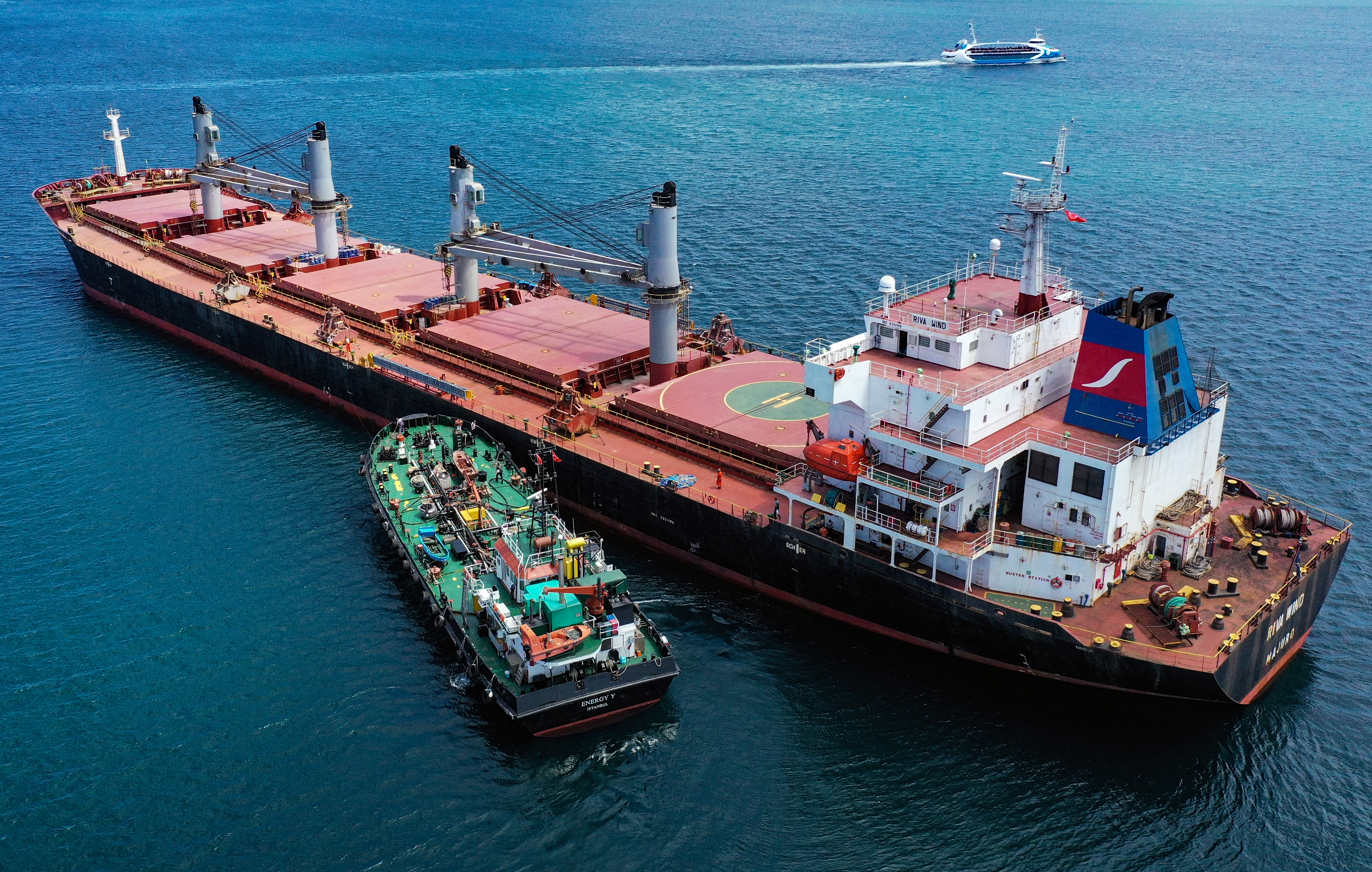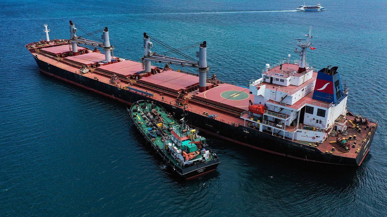 Tahıl ürünlerinin Ukrayna limanlarından emniyetli sevki için oluşturulan Müşterek Koordinasyon Merkezi'nde görevli Türkiye, Rusya, Ukrayna ve Birleşmiş Milletler (BM) temsilcileri, Ukrayna'nın Çornomorsk Limanı'ndan gelen mısır yüklü "Glory" adlı gemide denetim yaptı.