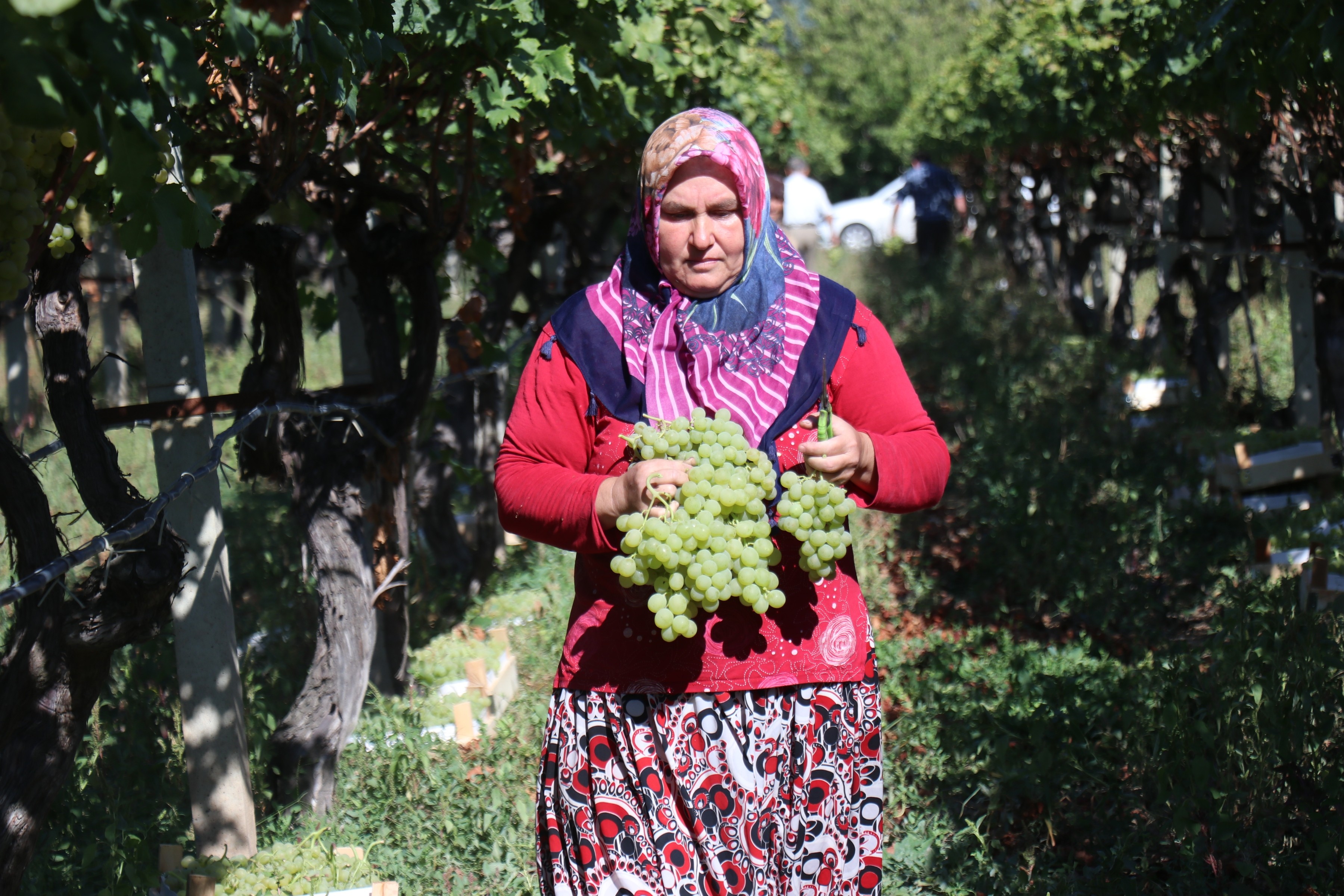 Bakım Nisan ayında başlıyor ve Eylül-Ekim aylarında hasat yapıyoruz. Üzümde çeşidimiz bol, 8-10 çeşit üzümümüz var. Pamukova üzümlerimiz ülkemizin sofralarını süslüyor ve insanlarımızın ağızlarını tatlandırıyor. Üzümler şahane bu sene, çürük yok” diye konuştu.