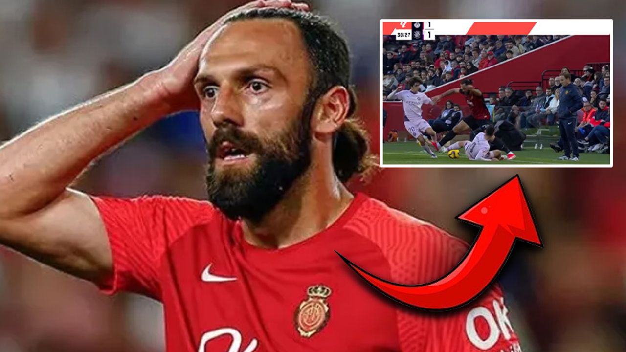 Vedat Muriç, dakikalar 32'yi gösterdiğinde rakibine bir müdahalede bulundu. Rakibi yerde kaldı fakat hakem oyunu devam ettirdi.