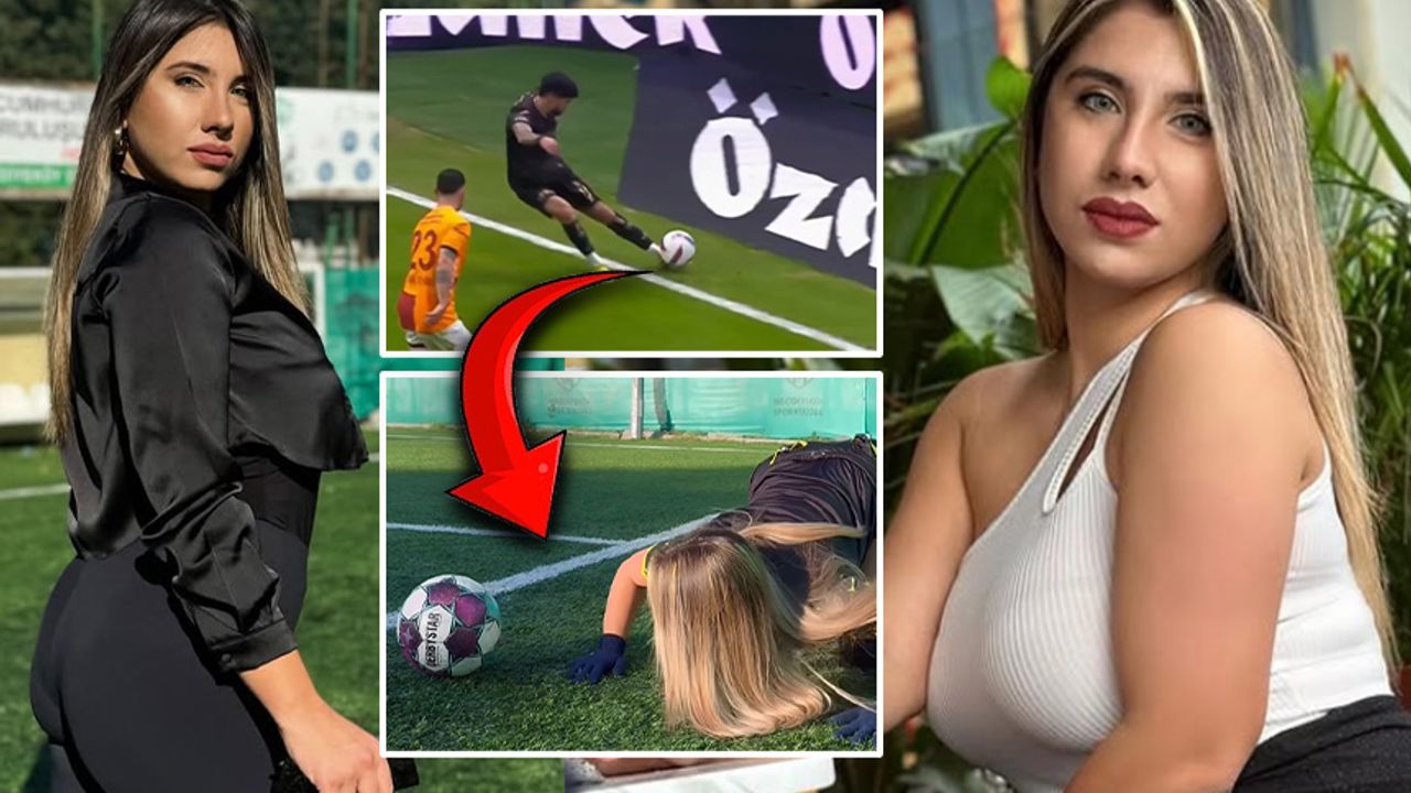 Eski hakem Elif Karaarslan, topu aynı noktaya bırakarak yere serildi ve topun çıkıp çıkmadığını kontrol etti.