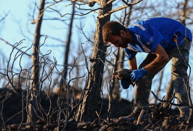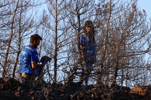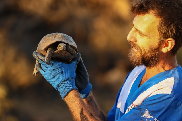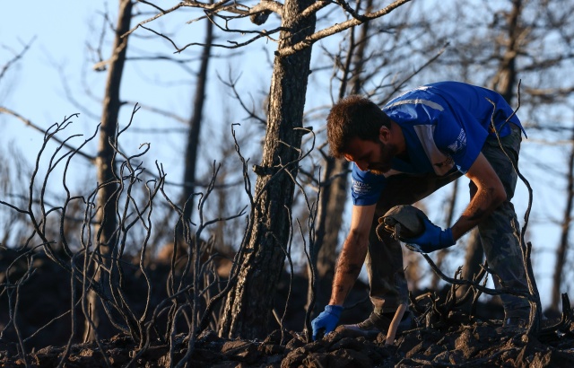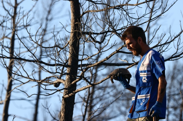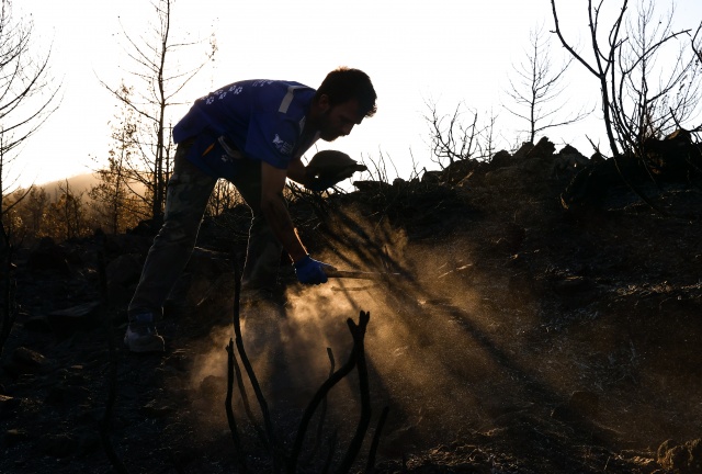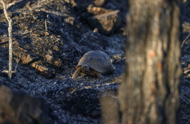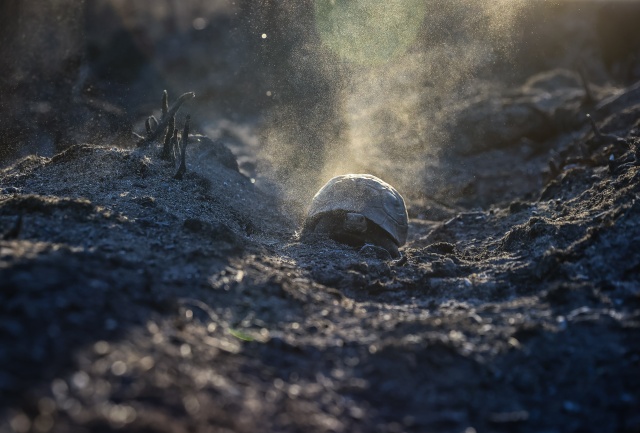 Yangından toprağın altına gizlenerek kurtulan hayvanları arıyorlar