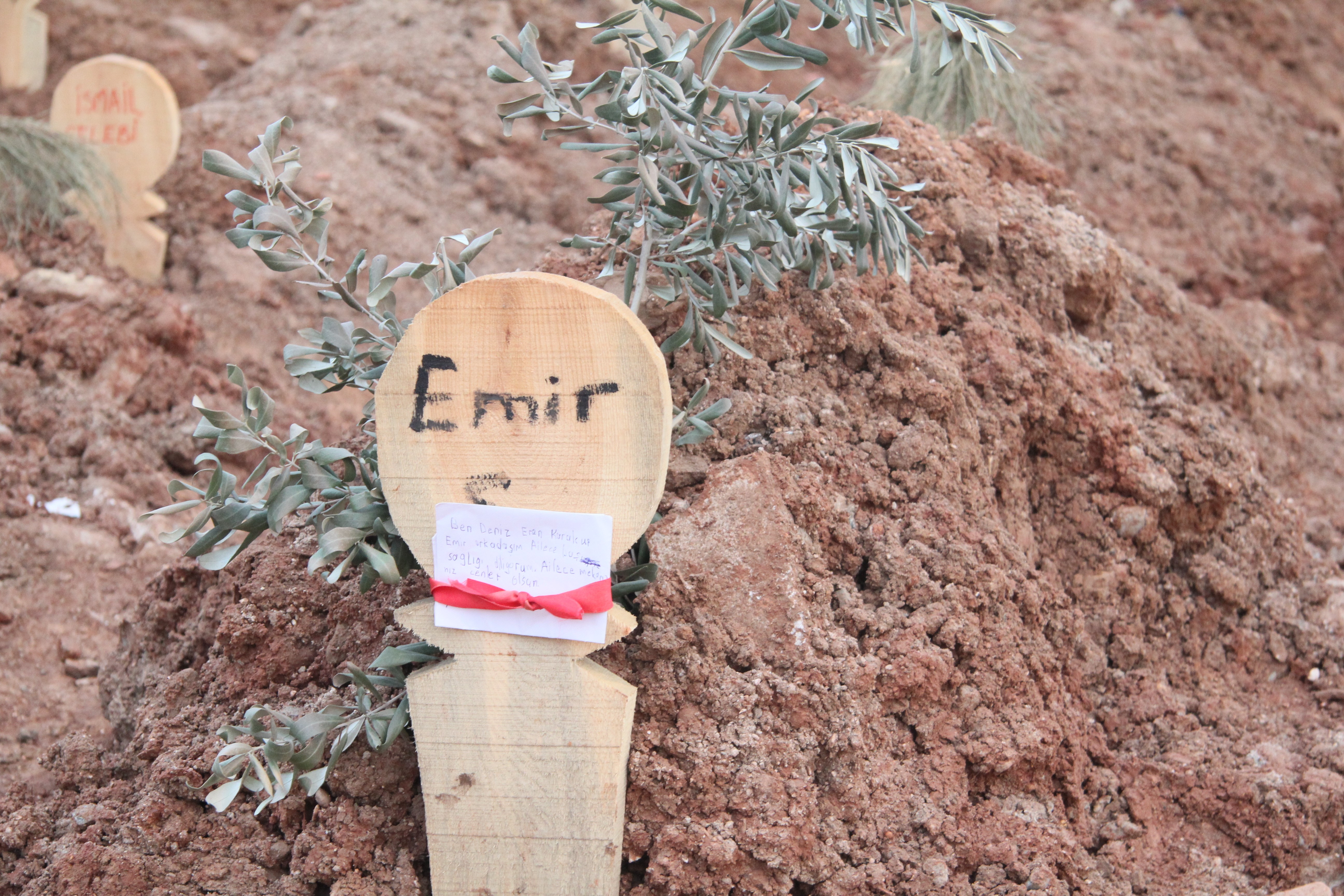 Depremde ölen gelinlik çağındaki kızların mezar taşlarına beyaz duvaklar bağlanırken, okulları yarım kalan öğrencilerin mezarlarında ise bırakılan kalemler yer aldı. Depremden sağ kurtarılan bir çocuğun ise Emir adındaki bir arkadaşının mezar taşına bıraktığı baş sağlığı notu ise görenleri duygulandırdı.