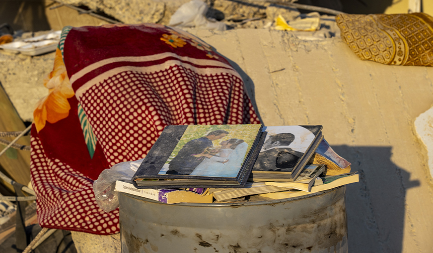 Merkez üssü Kahramanmaraş'ın Pazarcık ve Elbistan ilçeleri olan, toplamda 11 ili etkileyen 7,7 ve 7,6 büyüklüğündeki depremlerden etkilenen illerde enkaz kaldırma çalışmaları devam ediyor. Kahramanmaraş'taki çalışmalar esnasında enkazların arasında ailelere ait albümler ve fotoğraflar da çıkartılıyor.