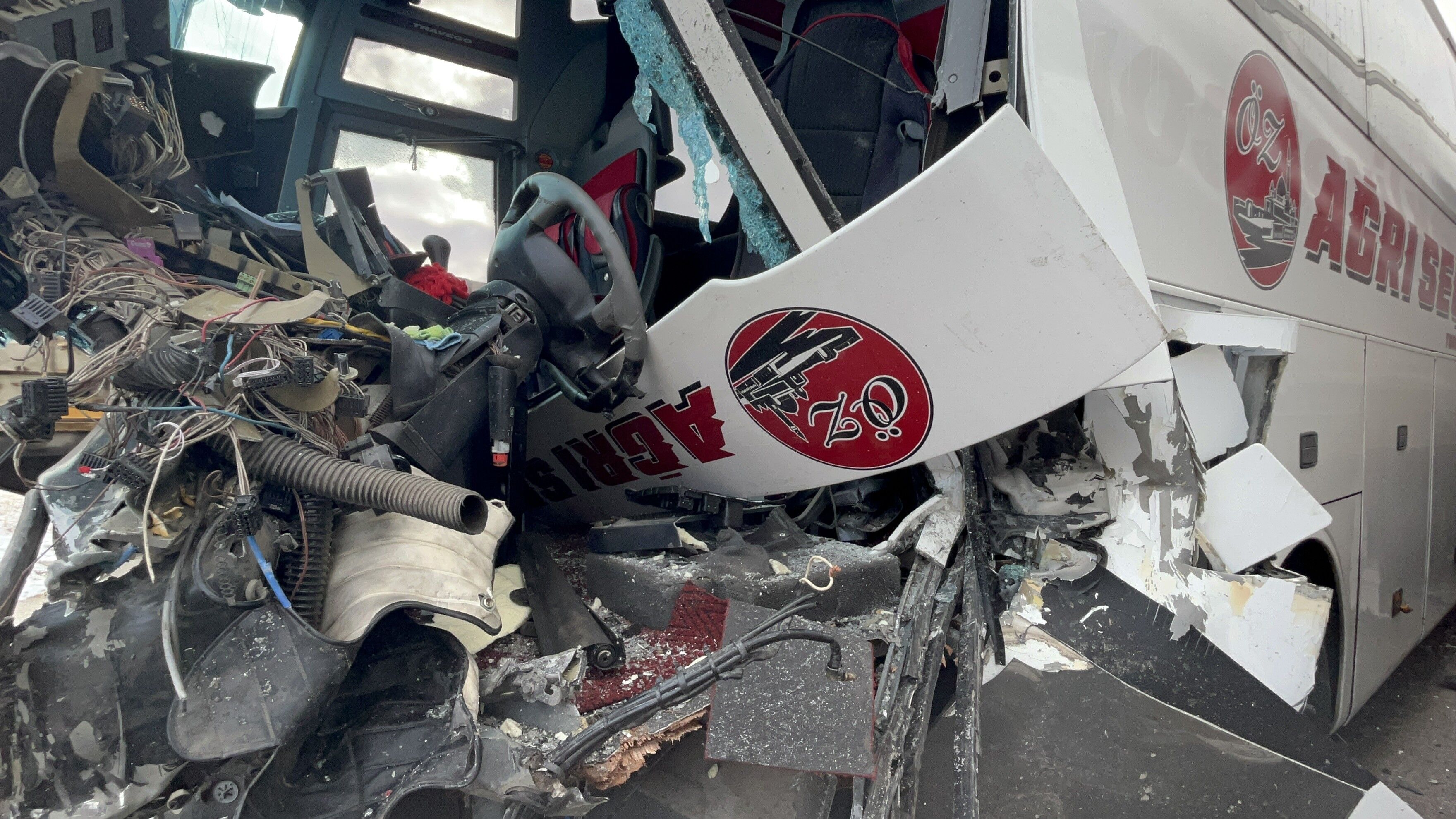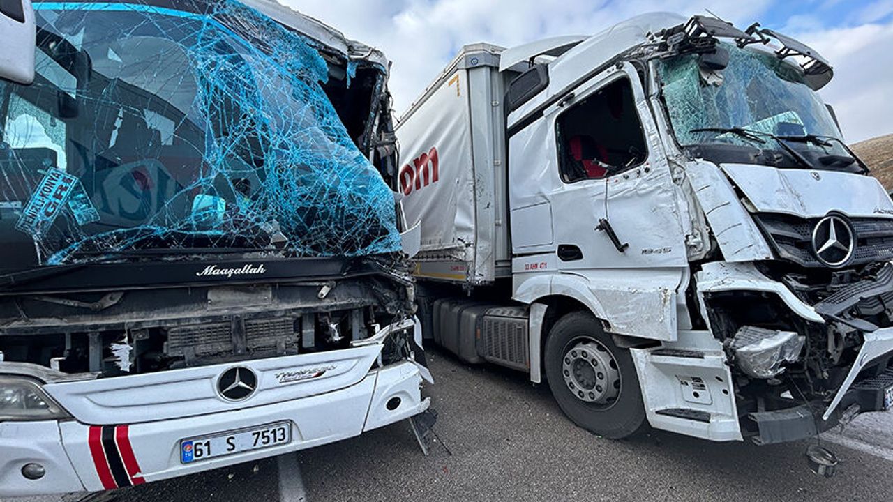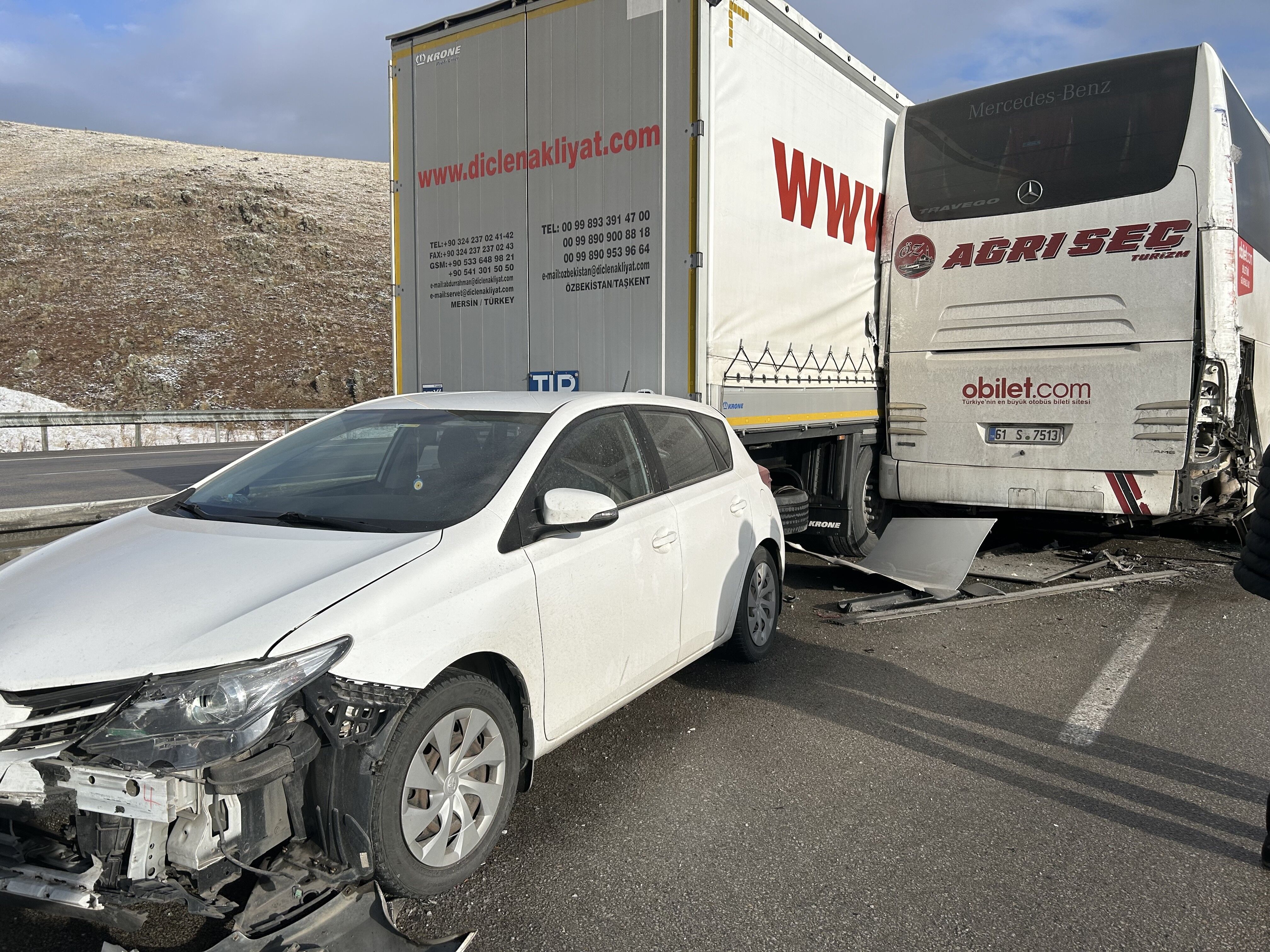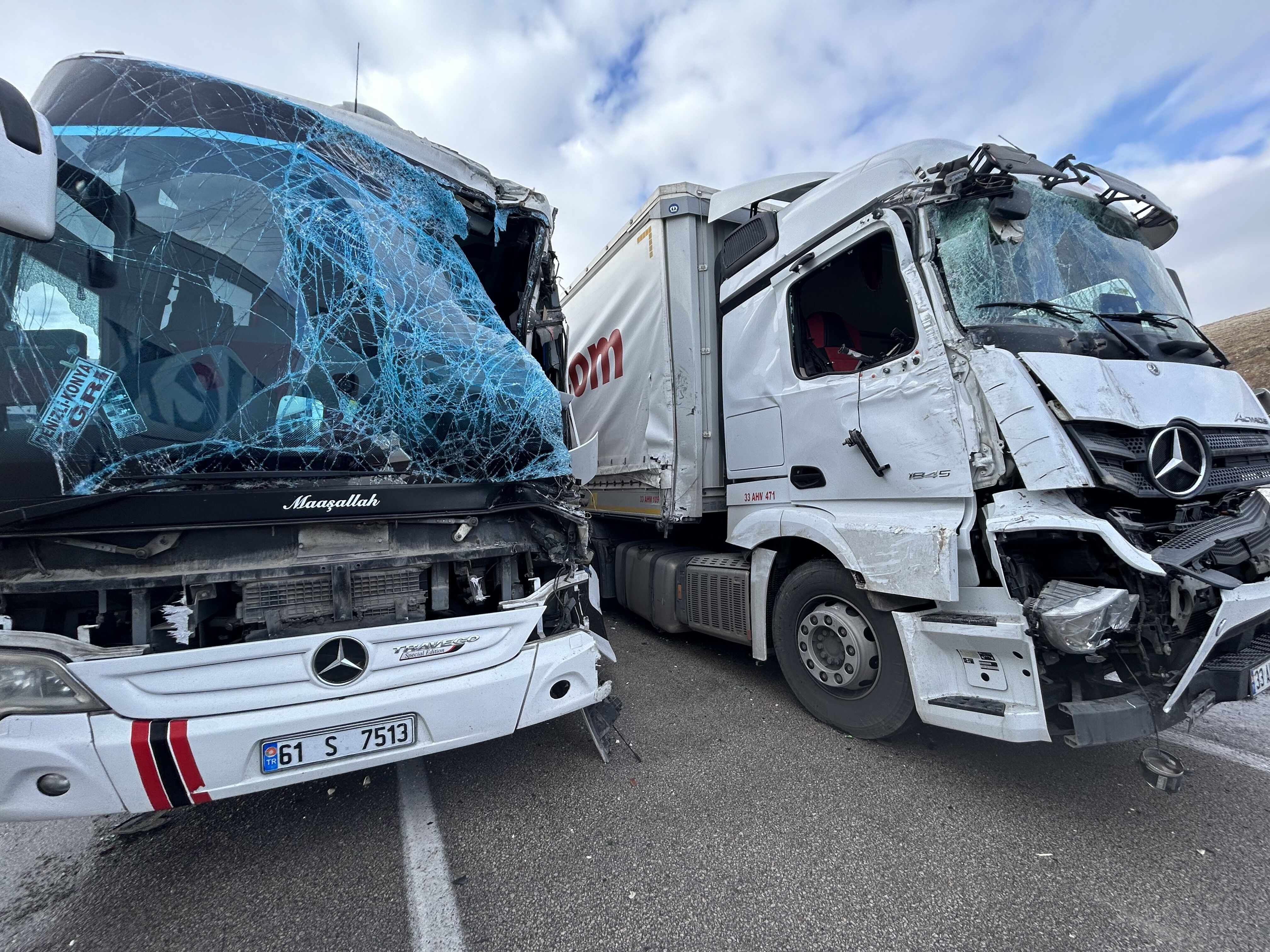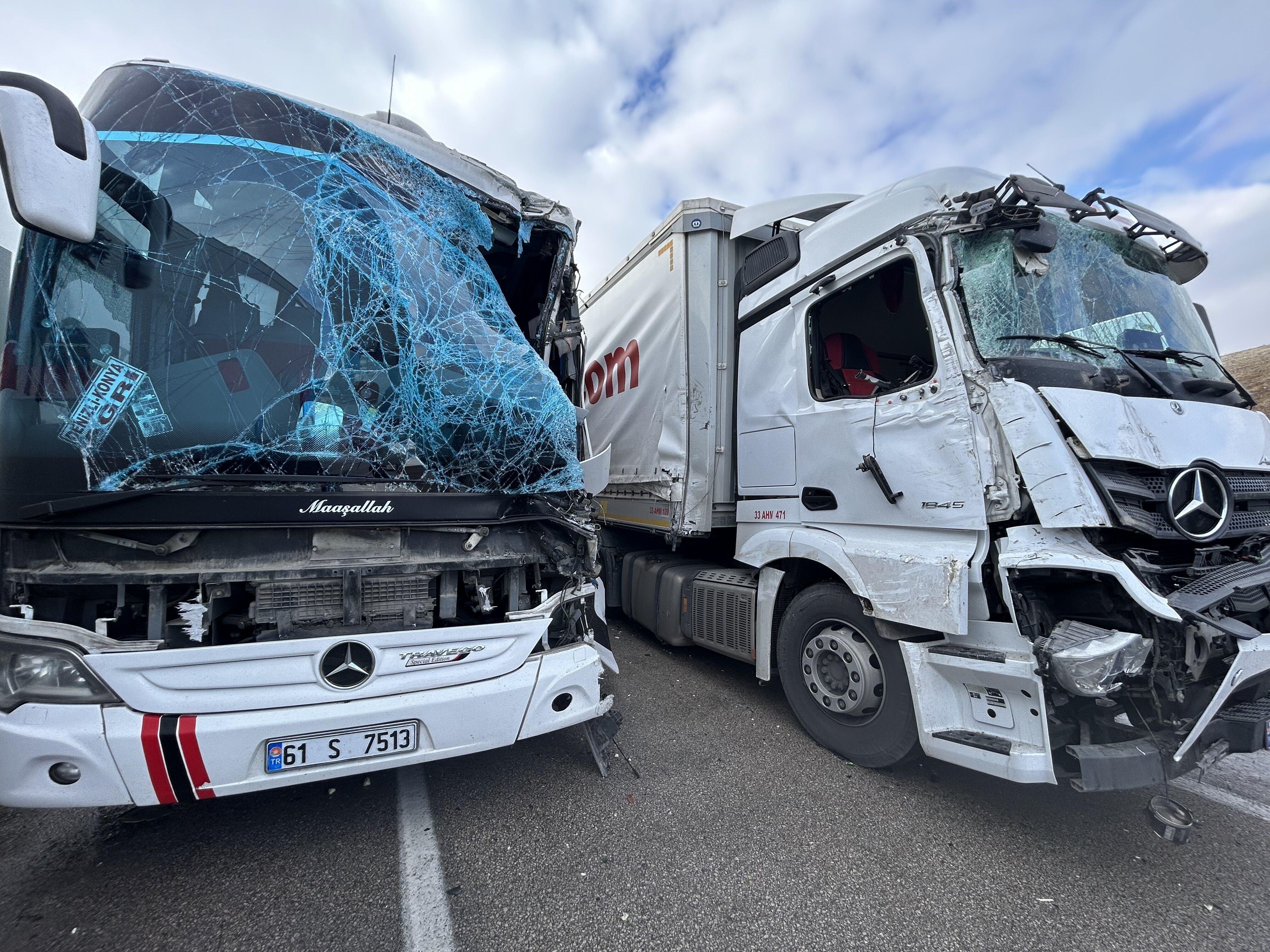 Sabah saat 7.30 civarında gerçekleşen kazada otobüs ile kamyon buzlanma nedeniyle çarpıştı.