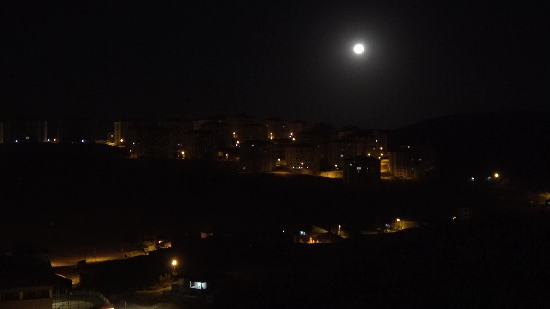 Büyüklüğüyle Cilo Dağları'nın üzerinde duran ay görsel şölen sunarken, hemen dağların eteklerinde yer alan evlerin ışıkları ile birleşmesi de şehre ayrı bir güzellik kattı.