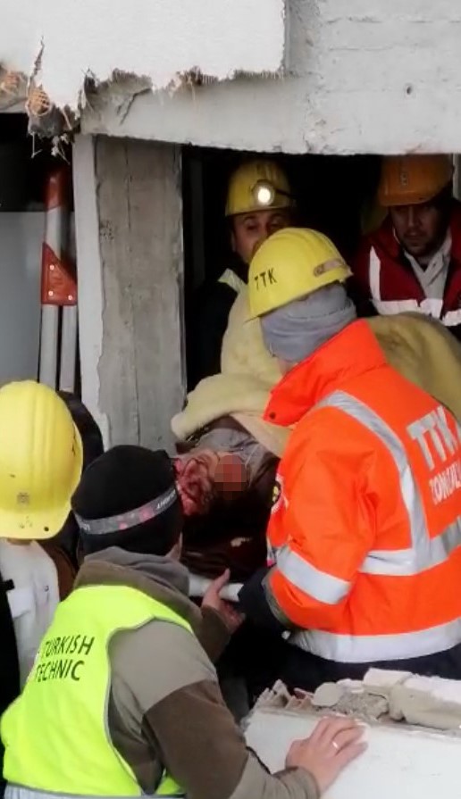 Enkaz altında arama kurtarma çalışması yapan bir maden işçisi kurtardığı kız çocuğunu koşarak ambulansa yetiştirdi. Sevinç gözyaşları eşliğinde sağlık ekibine teslim edilen küçük çocuk her şeyden habersiz etrafını seyretti. Üzeri battaniyeyle sarılan küçük kız tedavi altına alındı. İşçilerin enkaz altından hayat kurtarma çalışmaları devam etti. Kurtarılan bir başka çocuk daha ekiplere teslim edildi.