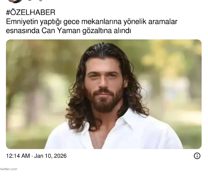 Gazeteci Burak Doğan, X hesabından yaptığı paylaşımda 'Emniyetin yaptığı gece mekanlarına yönelik aramalar esnasında Can Yaman gözaltına alındı' dedi.