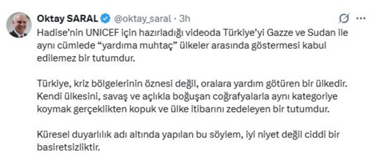 Hadise’nin UNICEF iş birliğiyle hazırladığı Ramazan videosu sosyal medyada tartışma yarattı. Videoda Türkiye’nin Gazze, Sudan ve Afrika’daki insani kriz bölgeleriyle birlikte “yardıma muhtaç” ülkeler arasında gösterilmesi, müzisyen Sinan Akçıl’ın sert tepkisine neden oldu. Akçıl, söz konusu ifadelerin Türkiye’ye yönelik haksız bir algı oluşturduğunu savundu.
