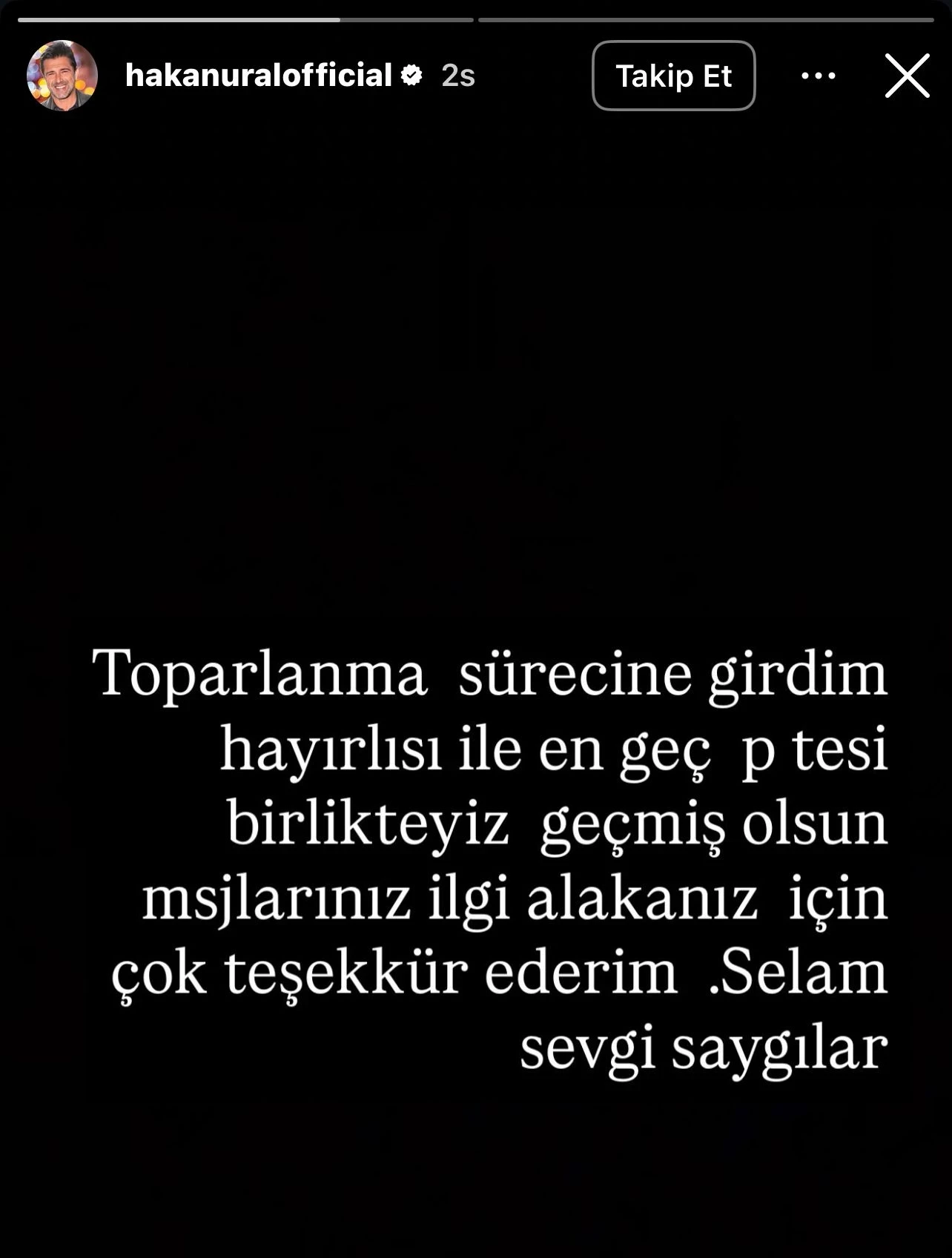 Toparlanma sürecine girdiğini söyleyen Hakan Ural, sağlık sorunları nedeniyle programda yer alamadığını ve en geç Pazartesi yayında olacağını da açıkladı.