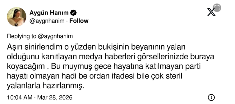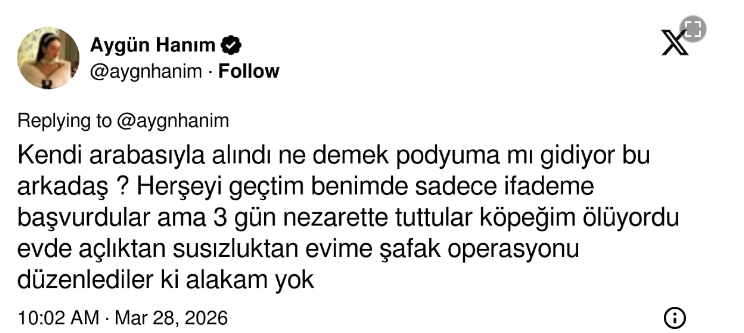 Gelişmelerin ardından, daha önce aynı soruşturmada adı geçen Aygün Aydın, X platformunda yaptığı paylaşımlarla dikkat çekti.
