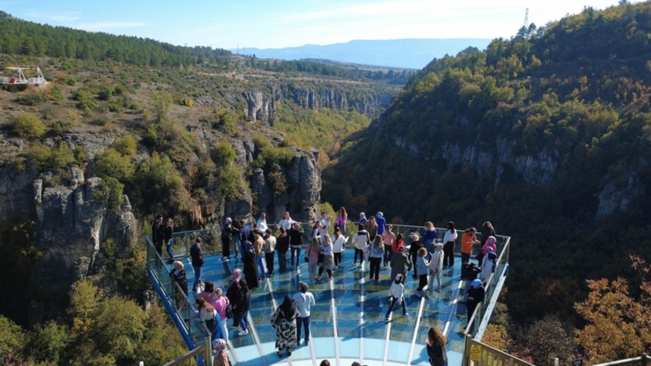 Bölgeye gelenler, sonbahar aylarında yeşil, sarı ve kahverenginin tonlarına bürünen ağaçların oluşturduğu manzarayı 80 metre yükseklikten izliyor.