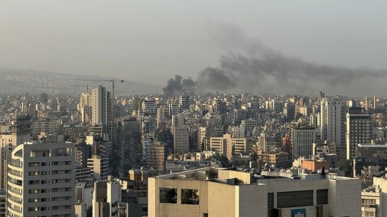 Sosyal medyaya yansıyan görüntülerde, İsrail'in hava saldırılarında büyük yıkıma uğrayan Beyrut'un güney banliyösü Dahiye'de vurulan bir binadan dumanların yükseldiği görüldü.