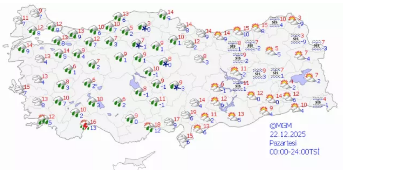 BUGÜN HAVA NASIL OLACAK? (22 ARALIK PAZARTESİ)