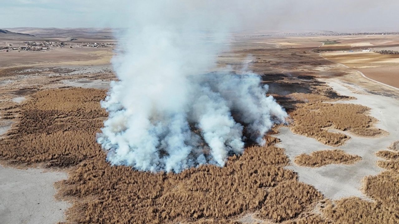 İlçenin 24 kilometre batısında Tuz Gölü Havzası içinde yer alan ve geçen yıl tamamen kuruyan göldeki sazlık alanda, iki gün önce henüz bilinmeyen nedenle yangın çıktı.