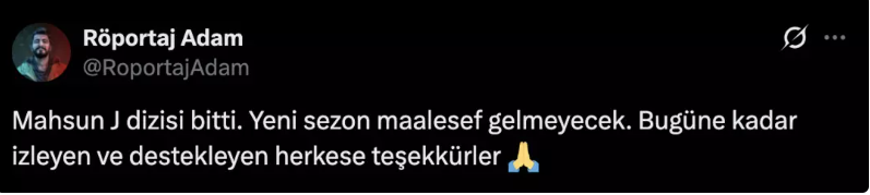 Mahsun Karaca, sosyal medya hesabından yaptığı paylaşımda, "Mahsun J dizisi bitti. Yeni sezon maalesef gelmeyecek. Bugüne kadar izleyen ve destekleyen herkese teşekkürler” ifadelerini kullandı. Bu açıklama, bir süredir devam eden yeni sezon beklentilerine de noktayı koydu.