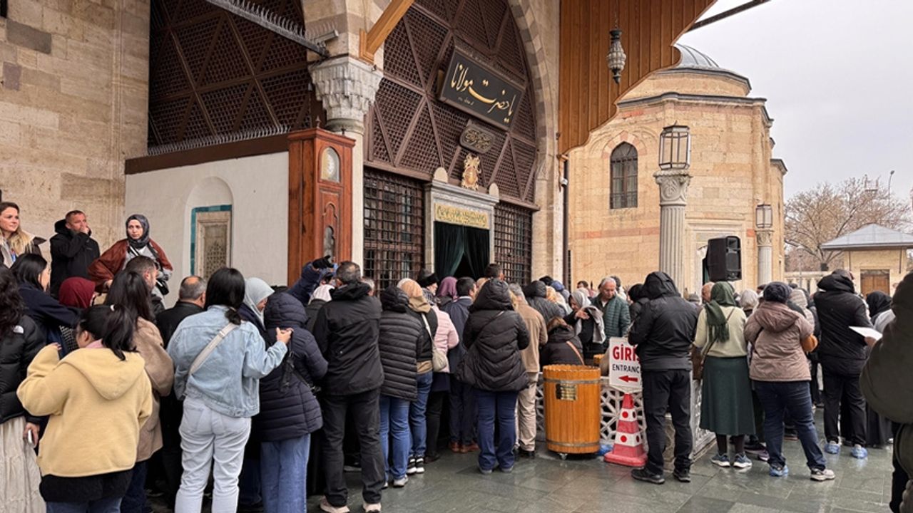 Bu yıl "Huzur Vakti" temasıyla düzenlenen törenler için kente gelenler, Mevlana Müzesi'ni ziyaret etti, Hazreti Mevlana'nın sandukası önünde dua etti.