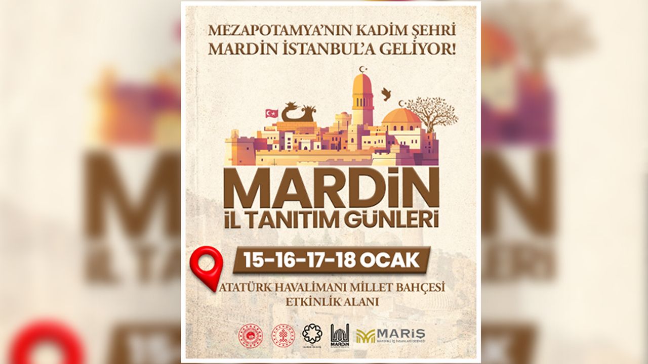 Mardin Valiliği himayelerinde, Mardinli İş İnsanları Derneği’nin (MARİŞ) organize ettiği Mardin İl Tanıtım Günleri, 15–18 Ocak 2026 tarihleri arasında İstanbul Atatürk Havalimanı Millet Bahçesi Etkinlik Alanı’nda gerçekleştirilecek.