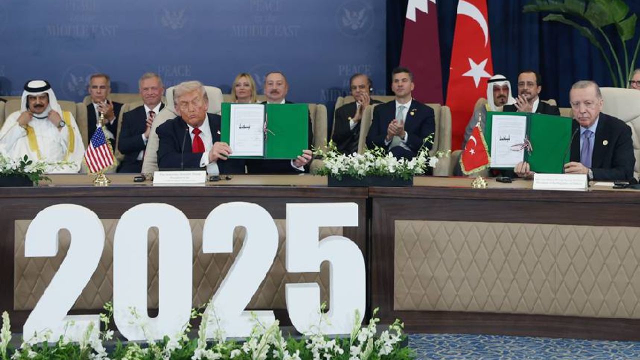 Aile fotoğraflarının çekilmesinden sonra Trump kısa bir konuşma yaptı. Ve tarihi zirvede imzalar atıldı. Tarihi zirvede Mısır, Katar ve Türkiye, ABD Başkanı Donald Trump ile ateşkes anlaşmasıyla ilgili niyet belgesini imzaladı. Arabulucular Mısır, Katar ve Türkiye, ABD Başkanı Donald Trump ile Gazze ateşkes anlaşmasıyla ilgili bir belge imzaladı.