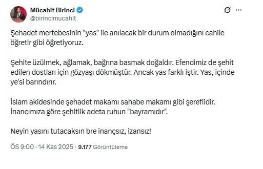 Mücahit Birinci'nin söz konusu paylaşımı şöyle: