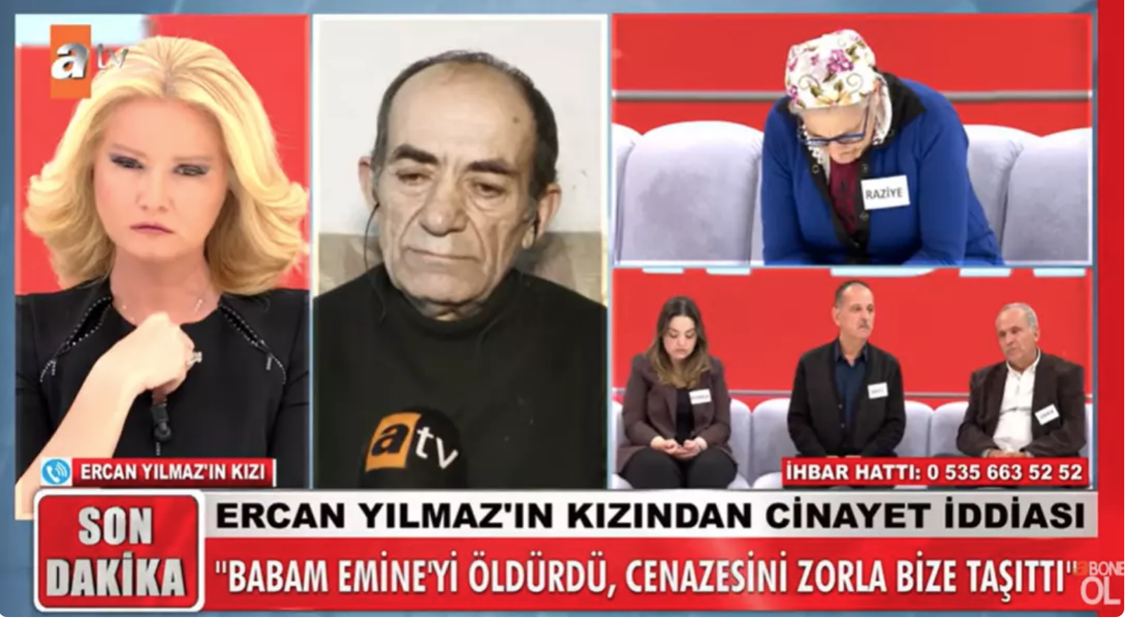 Yayına bağlanan bir kişi"Kızlar üç gün önce başkalarına olanları anlatmışlar. Ercan Bey, gel ve doğruyu anlat. Çocuğa ne oldu, gel bana anlat. Hem kızlarına tacizde bulunmuşsun hem de Emine’yi öldürmüşsün" dedi.Yayına bağlanan bir kişi"Kızlar üç gün önce başkalarına olanları anlatmışlar. Ercan Bey, gel ve doğruyu anlat. Çocuğa ne oldu, gel bana anlat. Hem kızlarına tacizde bulunmuşsun hem de Emine’yi öldürmüşsün" dedi.