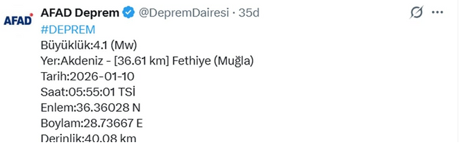 Muğla'nın Fethiye ilçesi açıklarında meydana gelen depremin 36.61 kilometre açıkta gerçekleştiği kaydedildi.