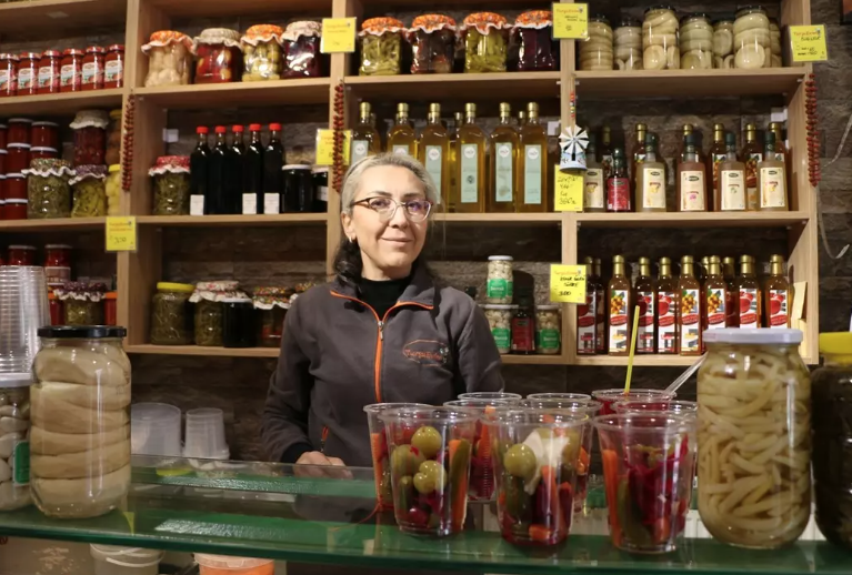 Şenay Balkandere (50), uzun yıllar özel sektörde çalıştıktan sonra 9 yıl önce eşiyle turşu dükkanı açtığını söyledi.