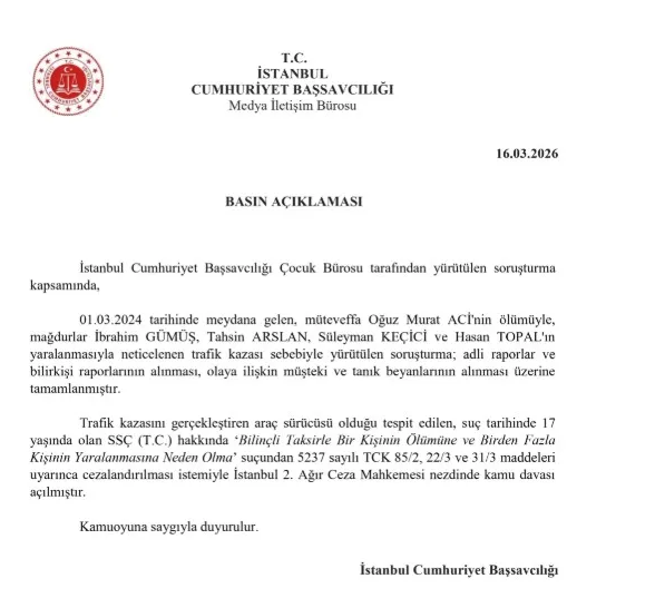 İstanbul Cumhuriyet Başsavcılığı'ndan yapılan açıklamada şöyle denildi:
