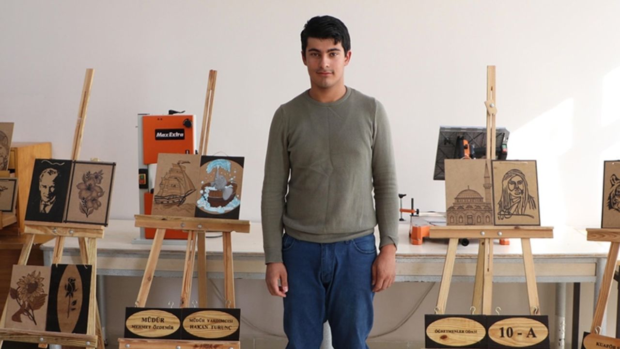 Erdem, ahşap yakma eserlerinin geri dönüşüm malzemelerinden yapıldığını kaydetti.